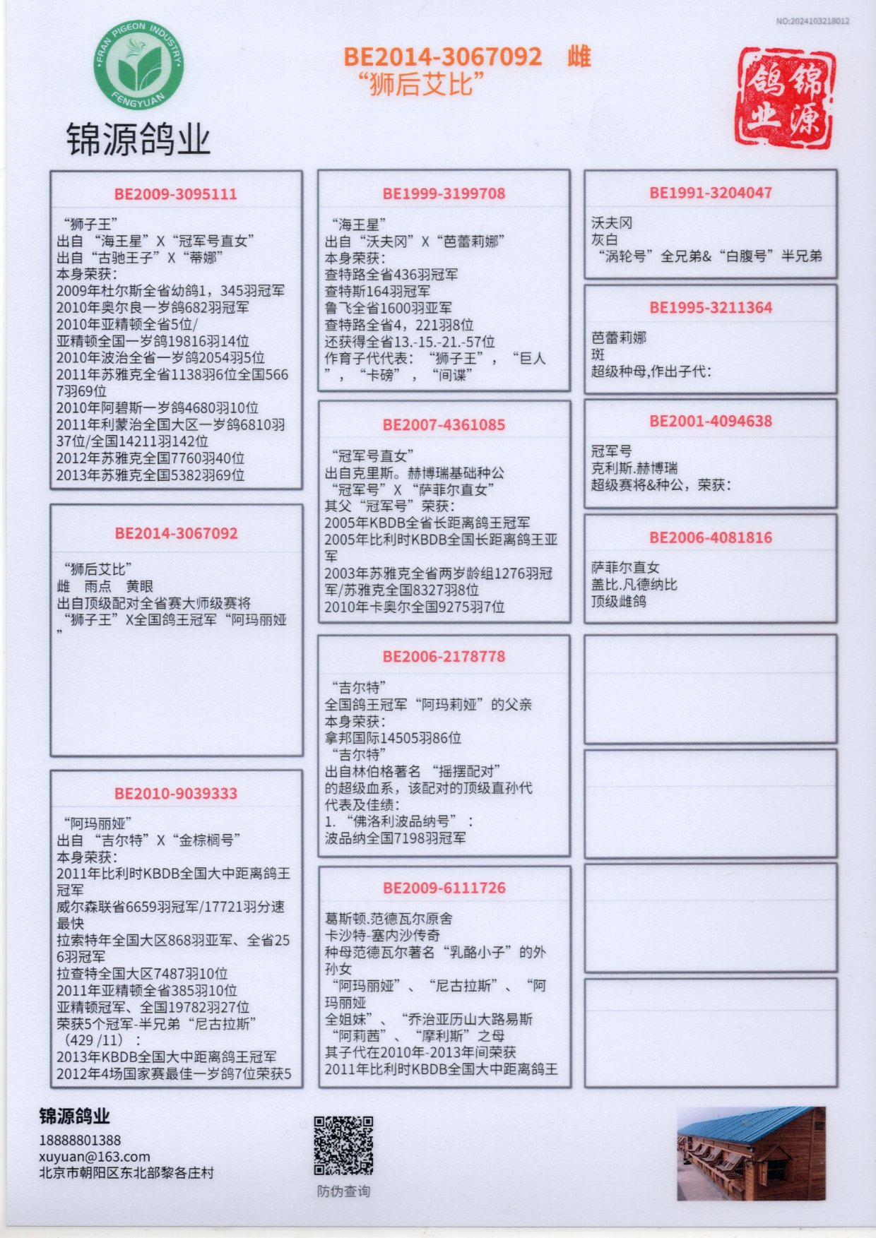 - 当前查看拍卖鸽:盖比原舍-“狮后艾比”