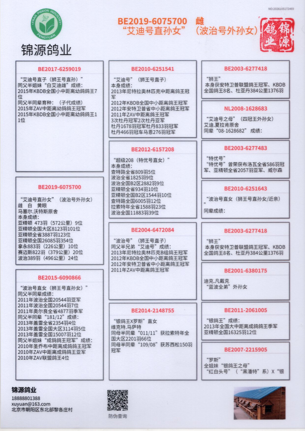- 当前查看拍卖鸽:马塞尔.沃特斯原舍“艾迪号直孙女”(波治