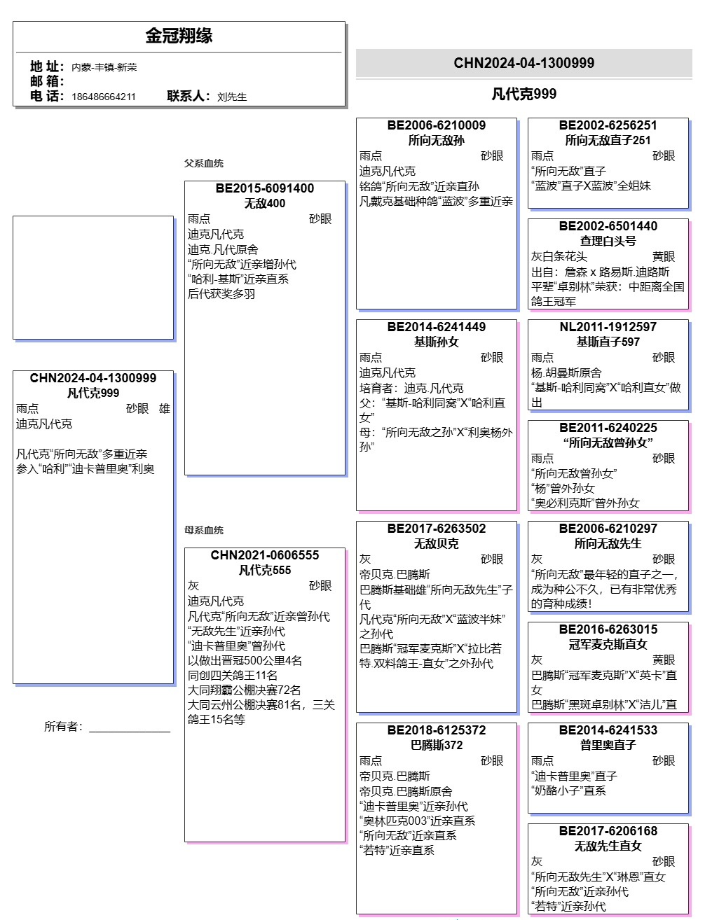 4.拍卖鸽友血统书的我们会全部上传,因为有非商业实战型鸽舍没有血统书,详细介绍都在照片说明中标注,所以有血统书和照片的我们会随鸽发走,没有血统书的,我们会发A4照片一张。