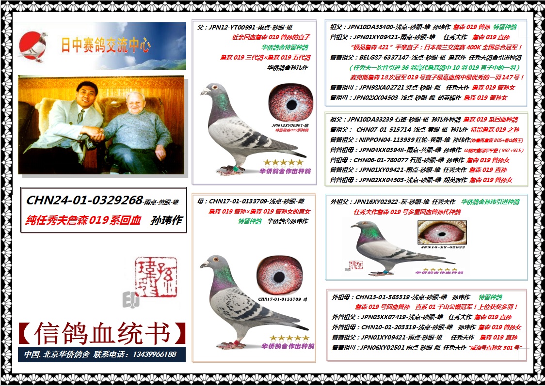 - 当前查看拍卖鸽:2号--极品詹森001近亲回血种鸽032