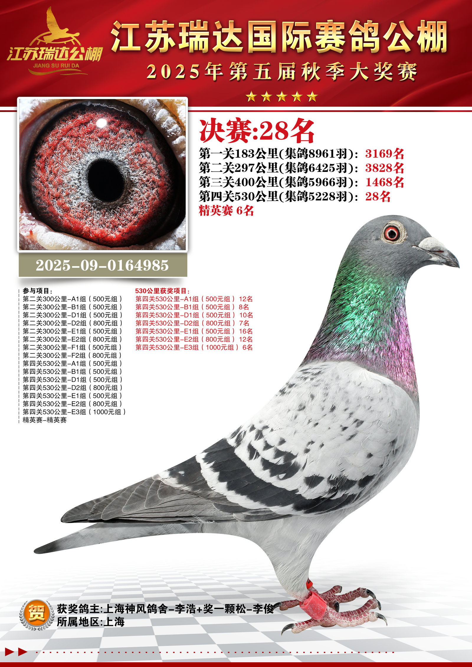 2022年上海嘉定五关特比鸽王总冠军!