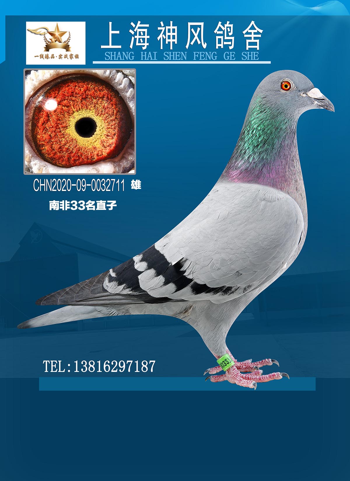 本身获得2019春上海君冠公棚决赛冠军。鸽王10位!