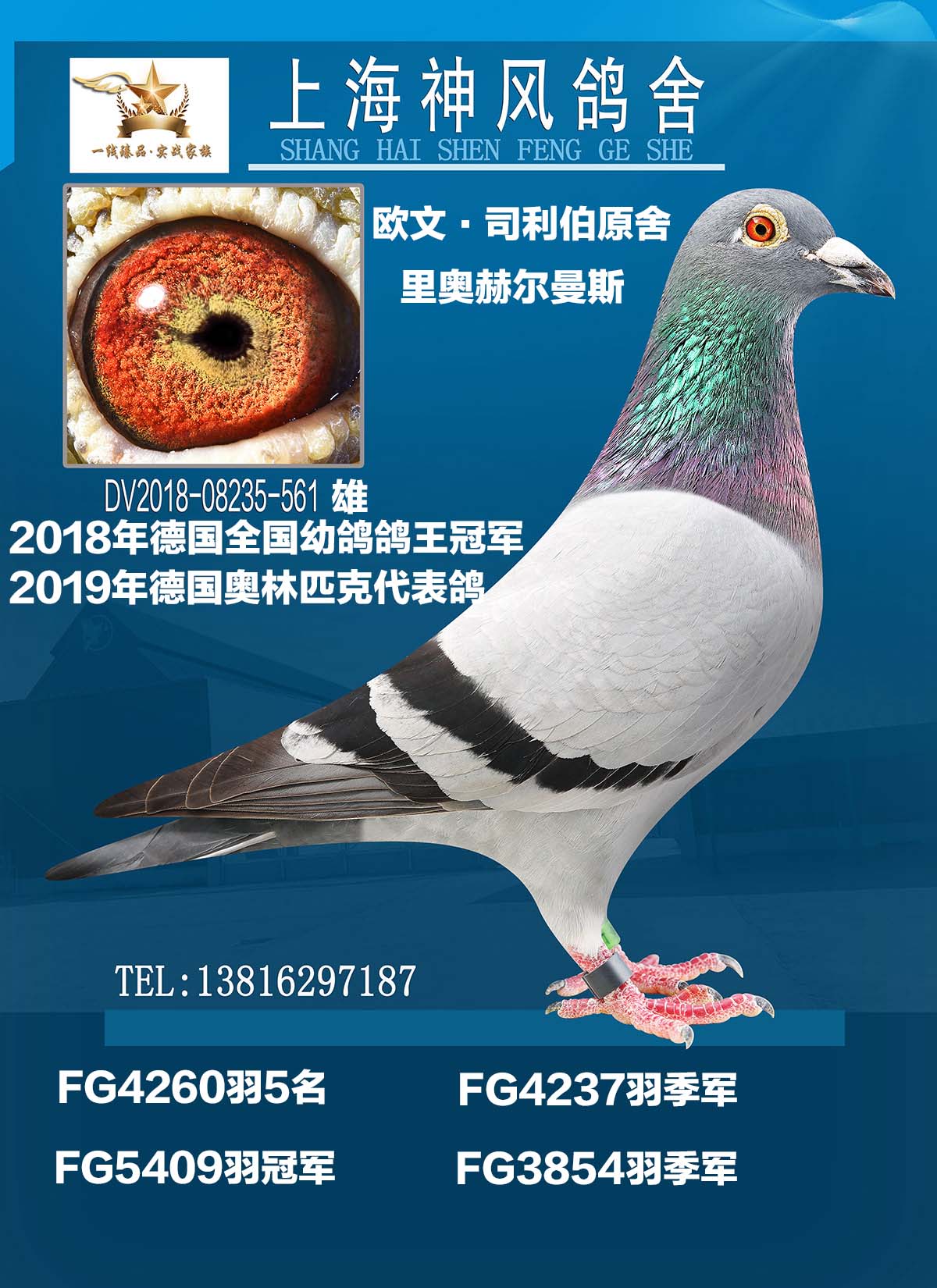 自身获得2018年德国全国幼鸽鸽王冠军!