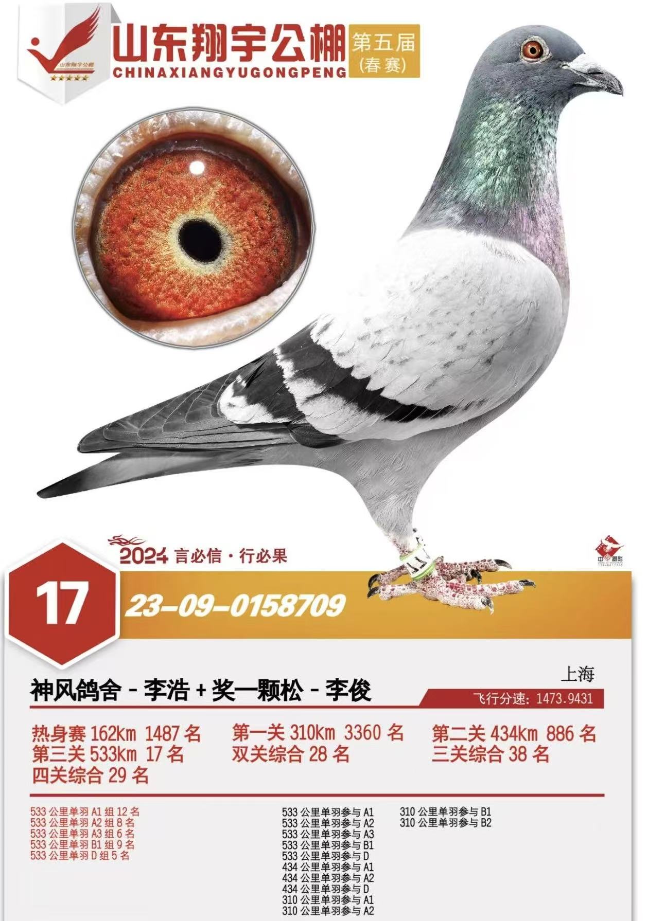 自身获得山东翔宇大棚「5000棚」决赛17名!双关鸽王28名!三关鸽王38名!四关鸽王29名!多项指定赢得奖金6位数!
