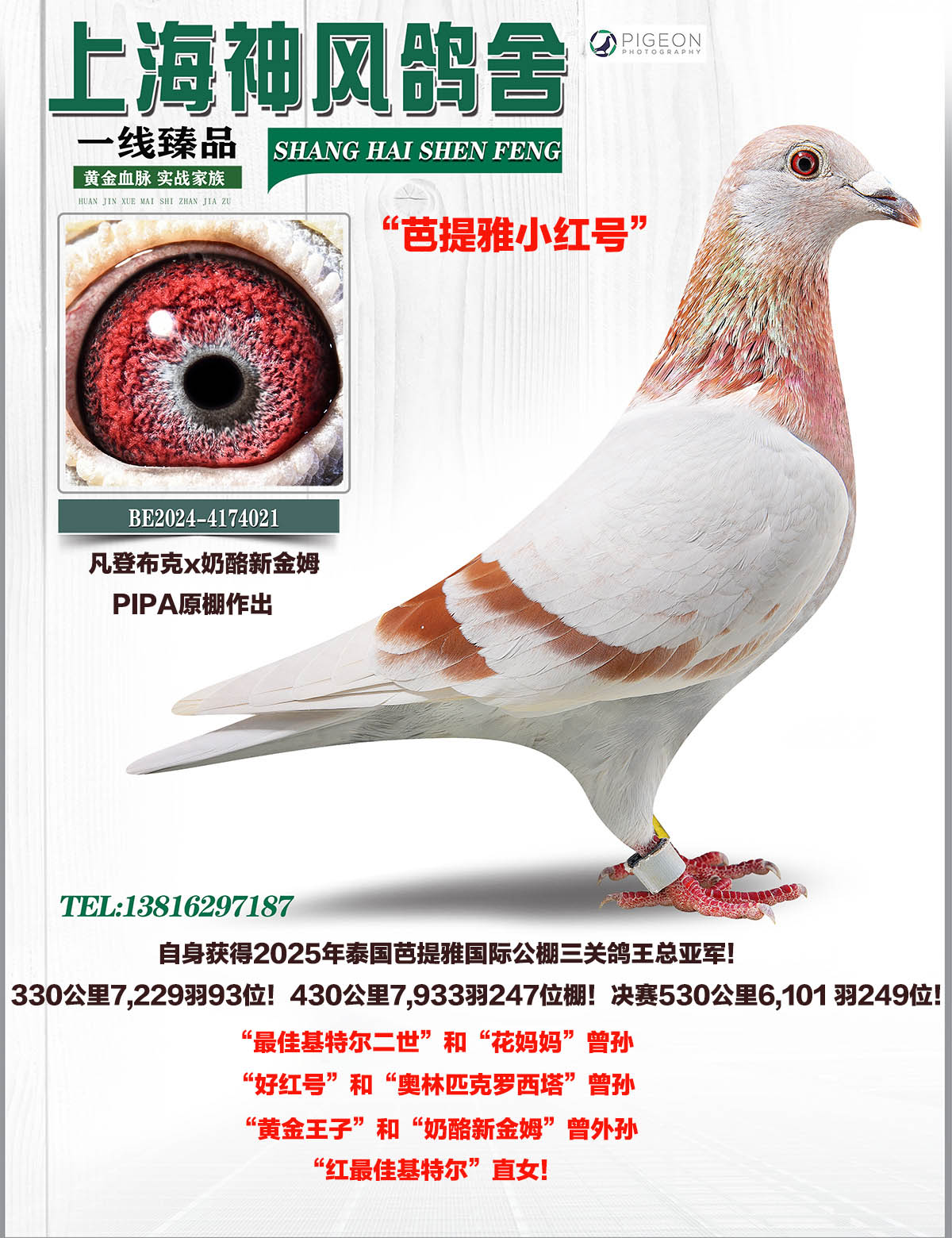 自身获得2025年春芭提雅国际公棚三关鸽王亚军!