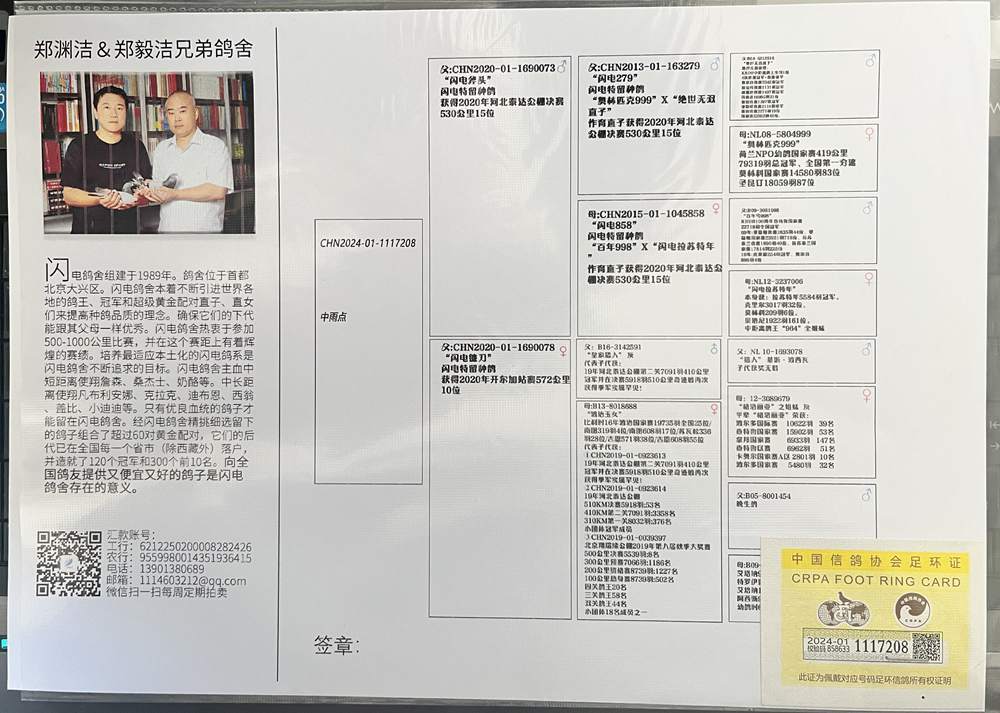 鸽主:闪电鸽舍-郑毅杰"