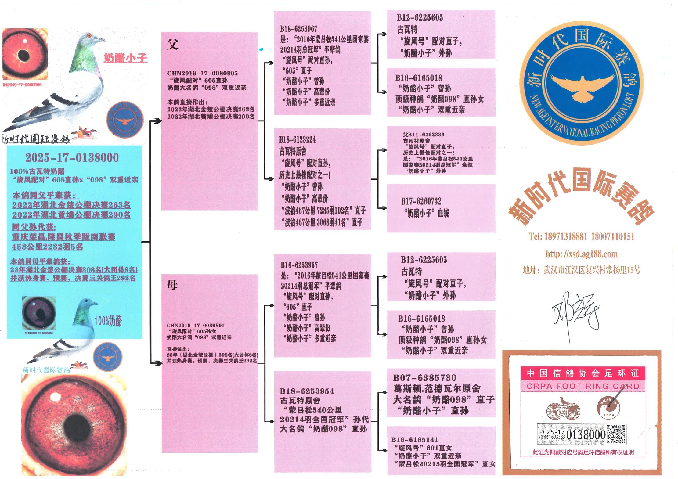 | 1642920 | 古瓦特奶酪 “旋风配对”605近亲 “098”近亲 | ¥0元 | 0次 |