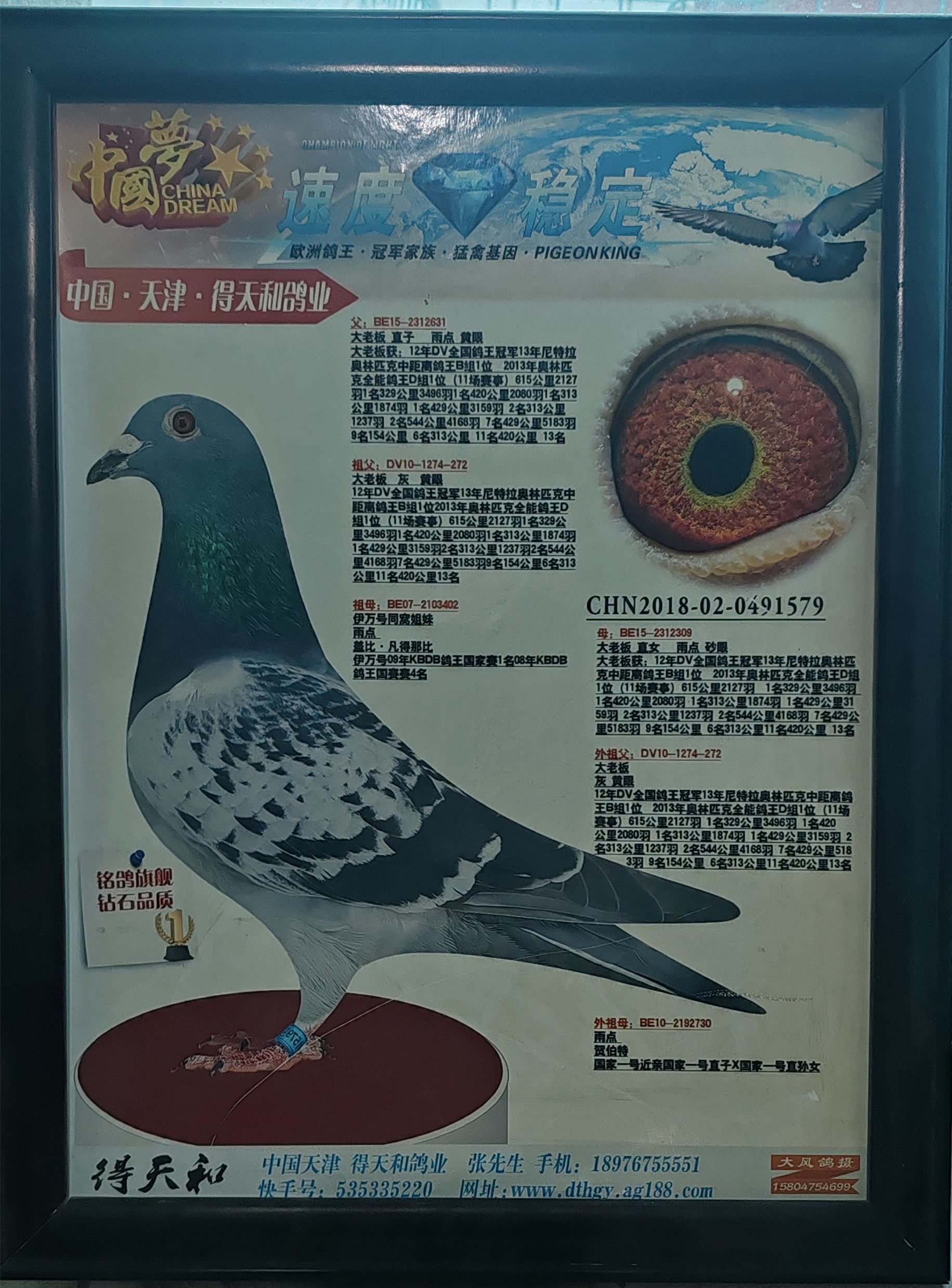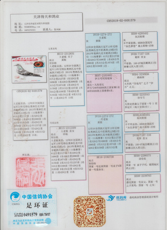 3、注明:请注意看种鸽和血统图片,有的种鸽环卡丢失,有些奖鸽无环卡和奖状和血统,介意请勿出价;