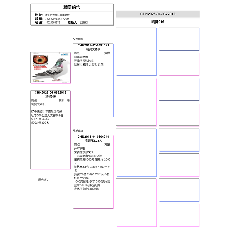 3、注明:请注意看种鸽和血统图片,有的种鸽环卡丢失,有些奖鸽无环卡和奖状和血统,介意请勿出价;