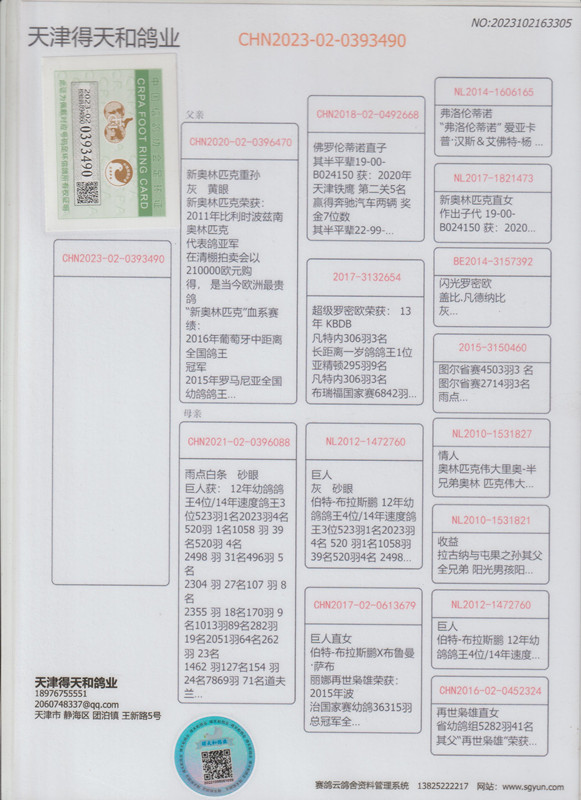 3、注明:请注意看种鸽和血统图片,有的种鸽环卡丢失,有些奖鸽无环卡和奖状和血统,介意请勿出价;