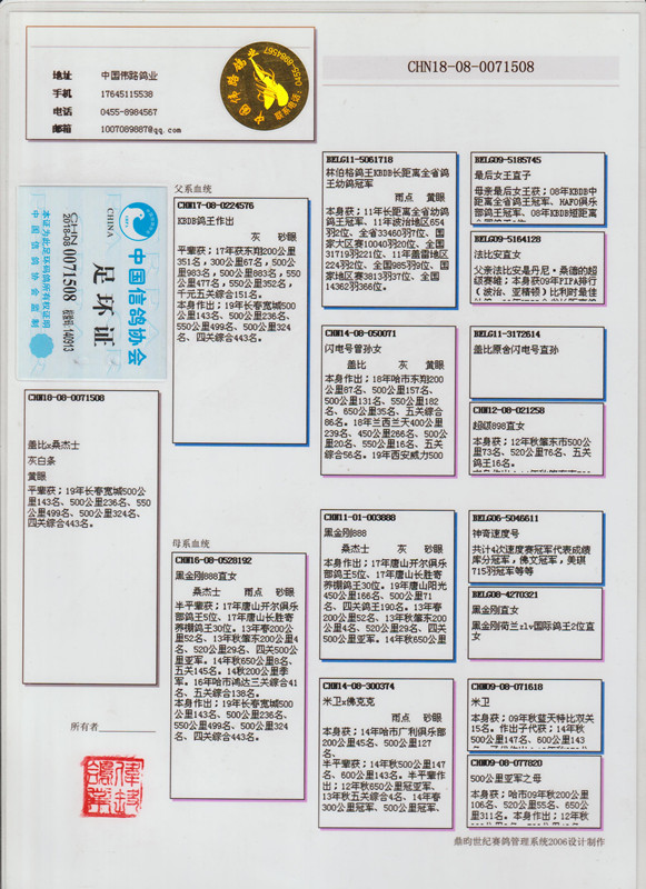 8、注明:本身有鸽会和公棚成绩的,是按着鸽主的记录和用网络查询为依据,没有奖状证书,仅供参考。