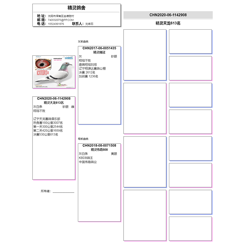 3、注明:请注意看种鸽和血统图片,有的种鸽环卡丢失,有些奖鸽无环卡和奖状和血统,介意请勿出价;