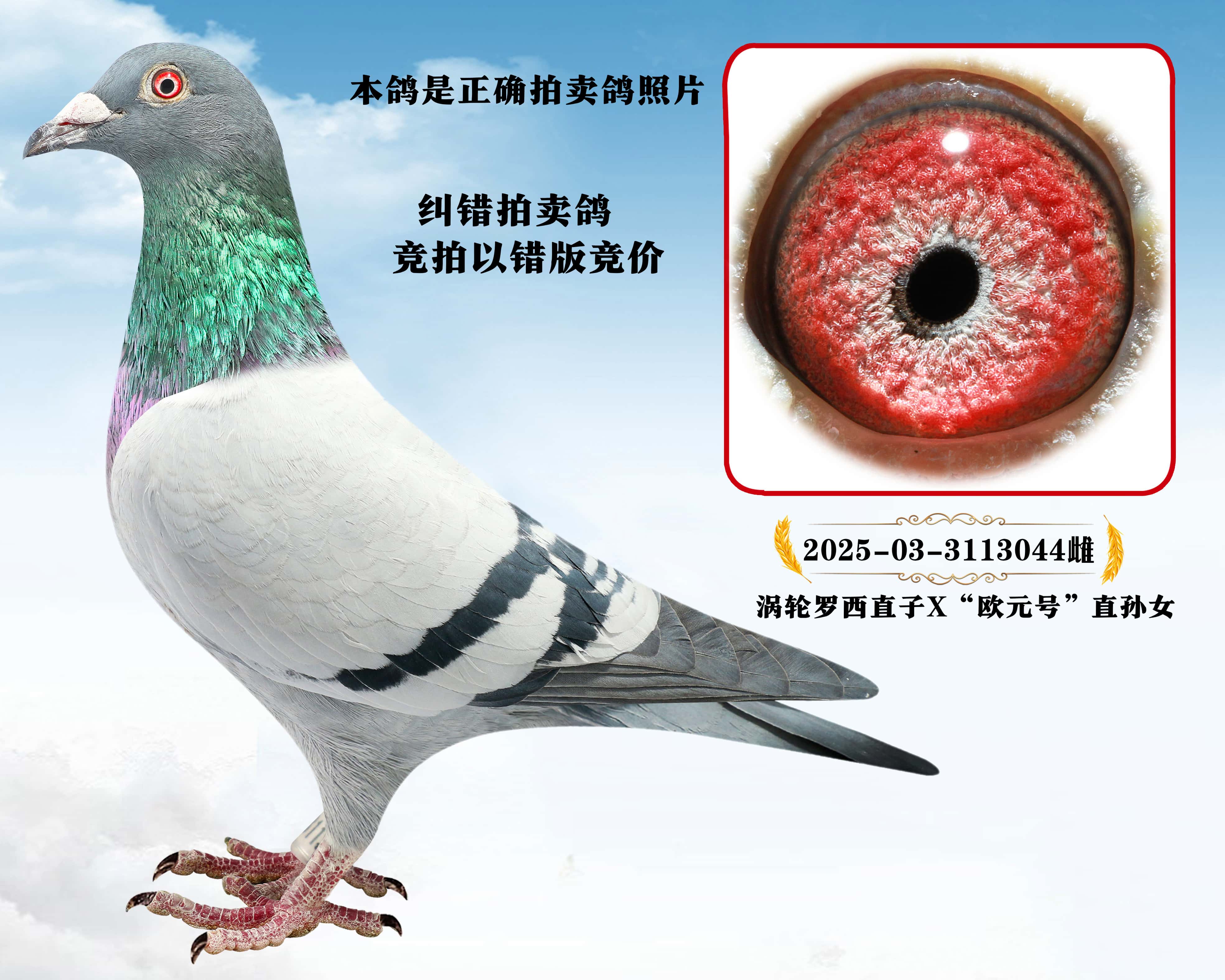 - 当前查看拍卖鸽:注意:本照片纠正“涡轮罗西”正确拍卖鸽照