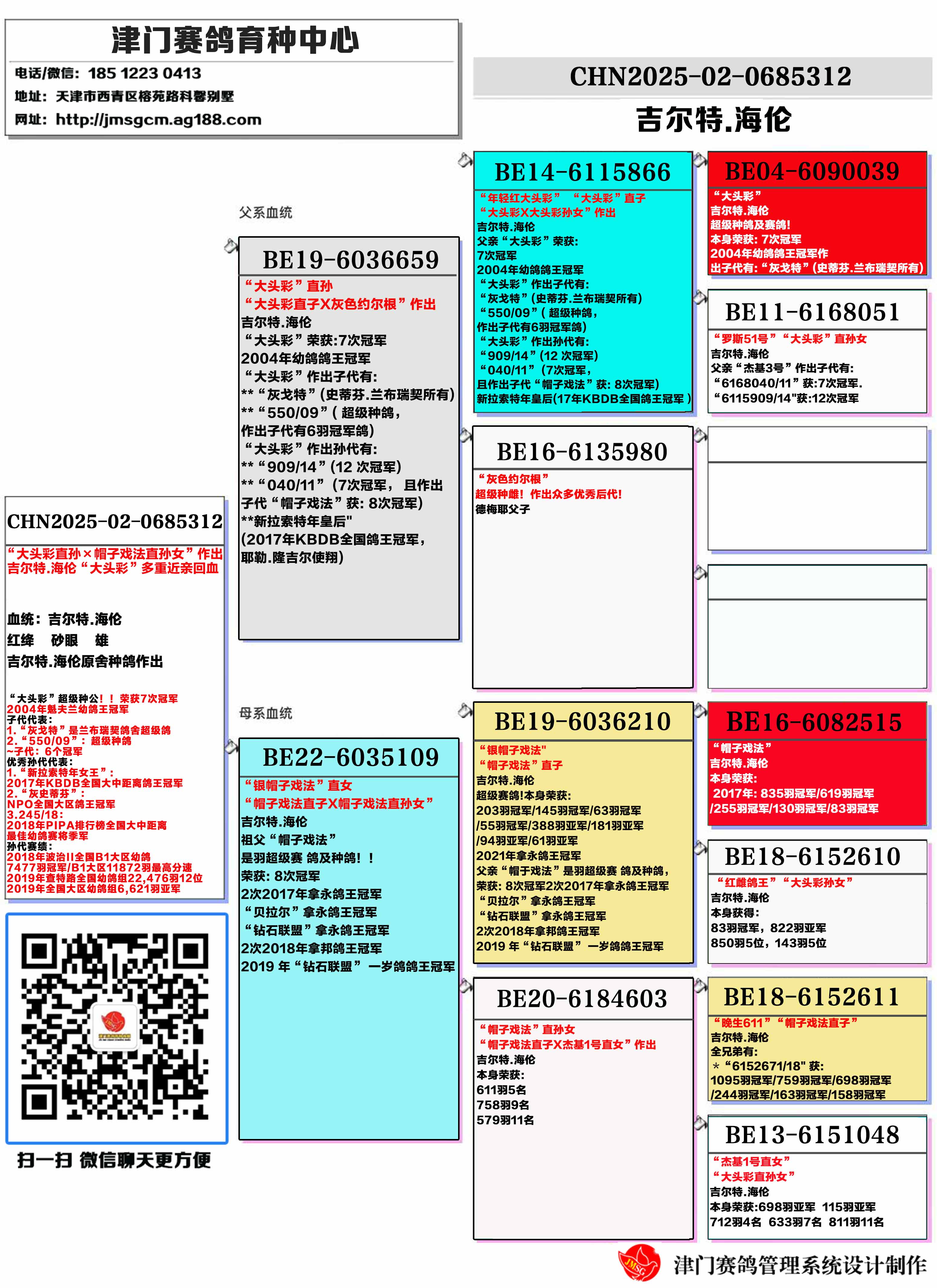 作出子代有6羽冠军鸽)