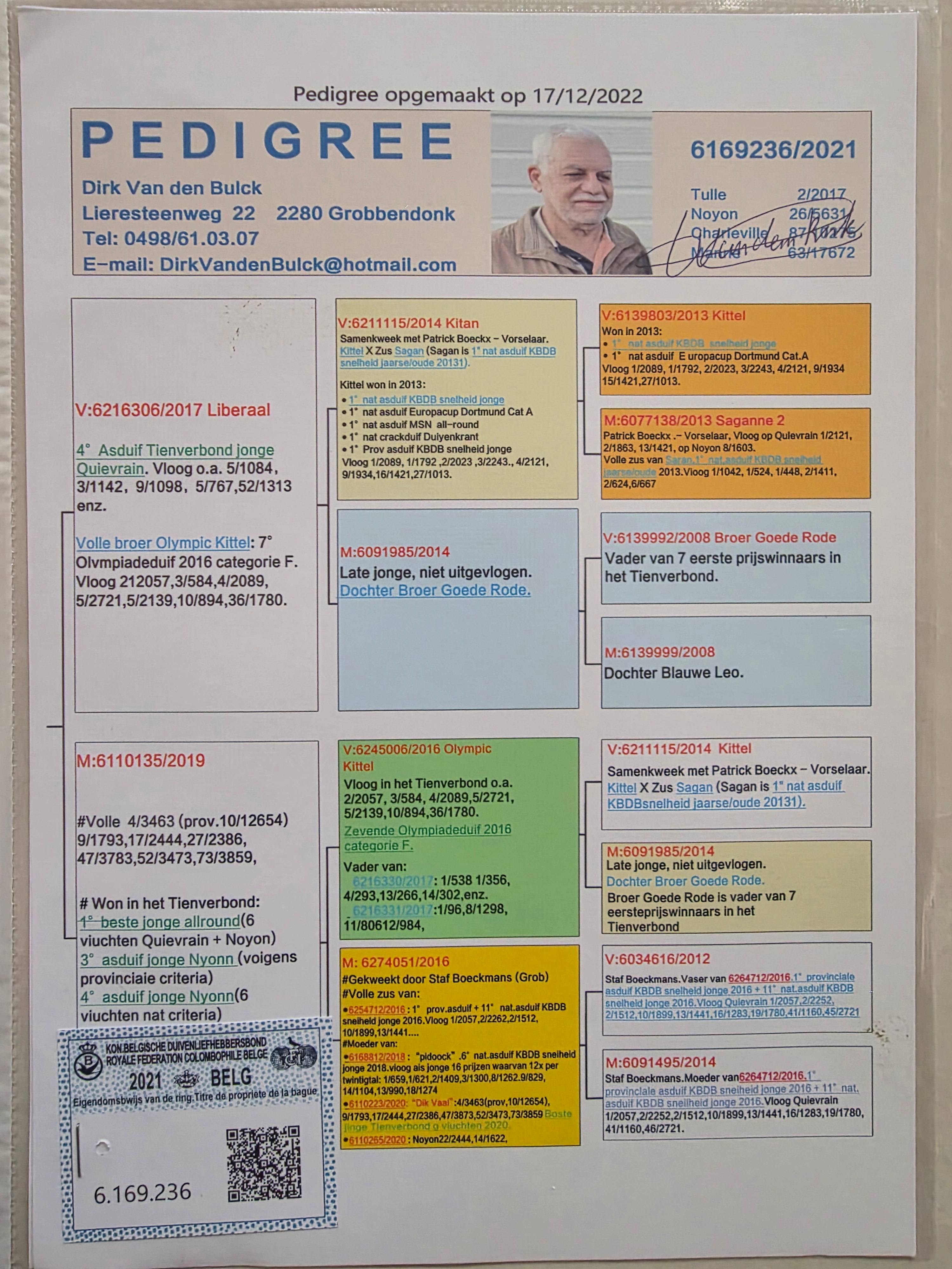 - 当前查看拍卖鸽:迪克.范登布克原舍“基特尔”曾孙代