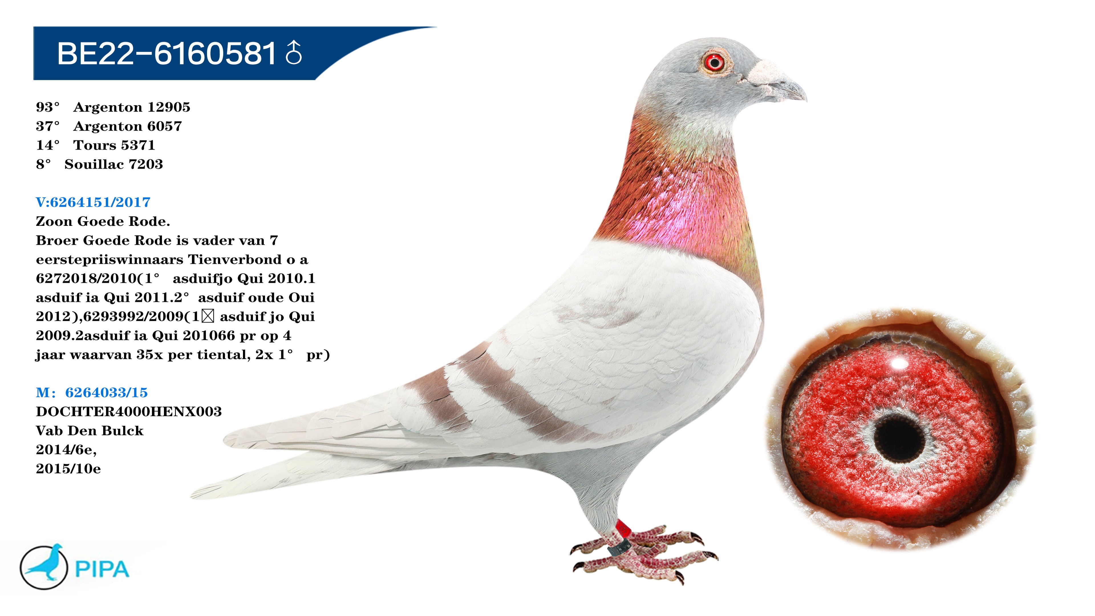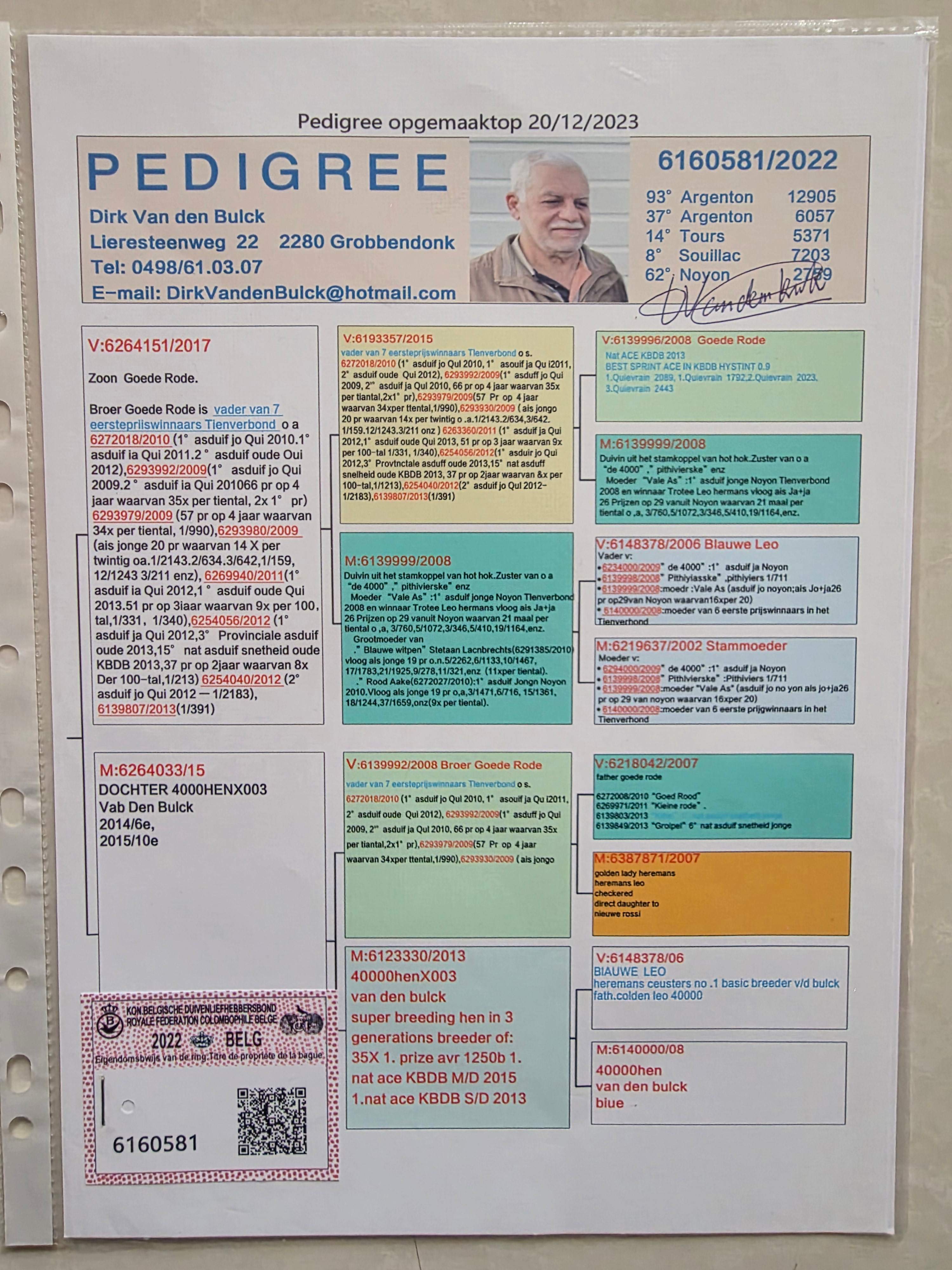 - 当前查看拍卖鸽:迪克.范登布克原舍 本身成绩1962羽5