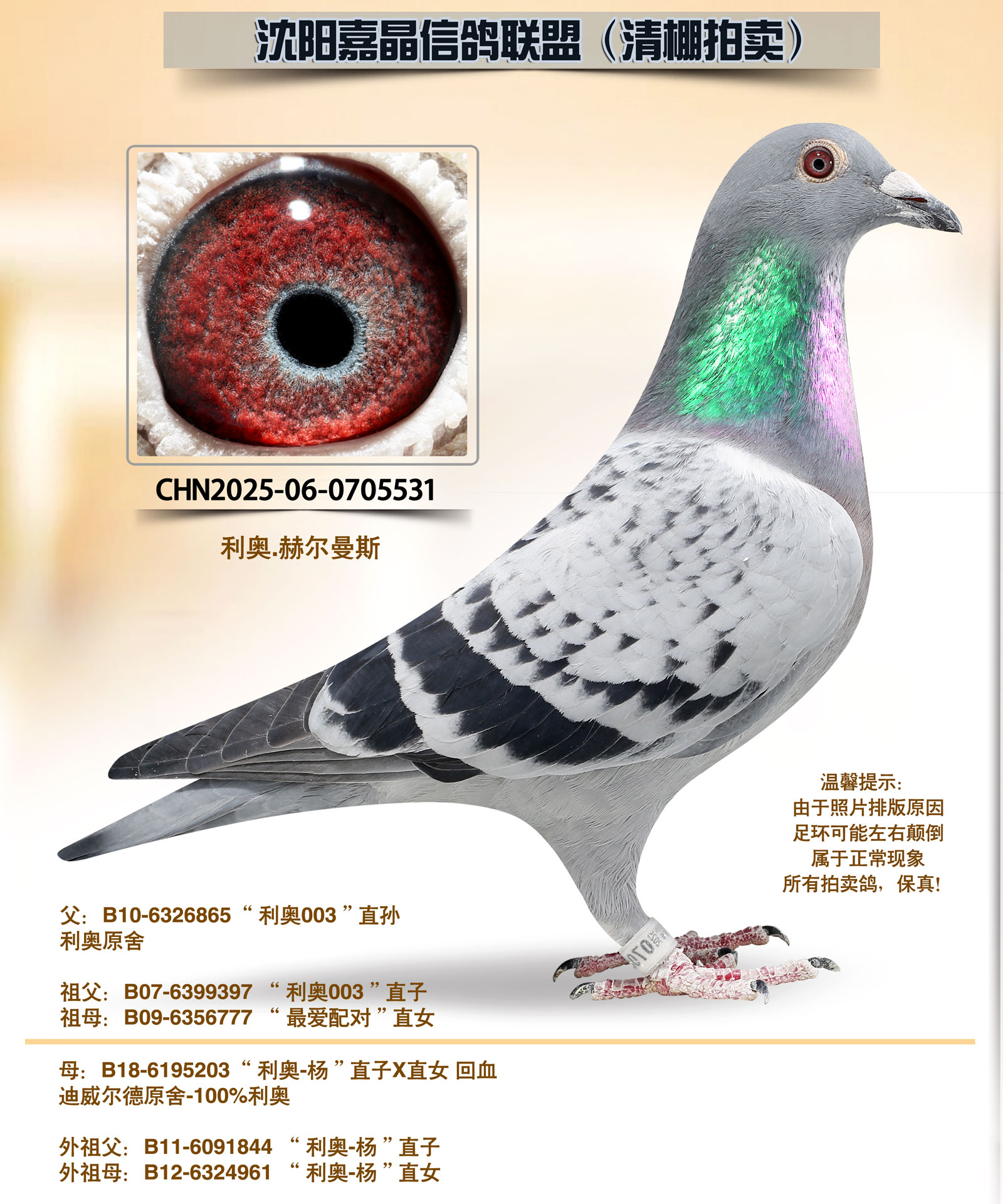 - 当前查看拍卖鸽:利奥“本舍黄金配对”子代