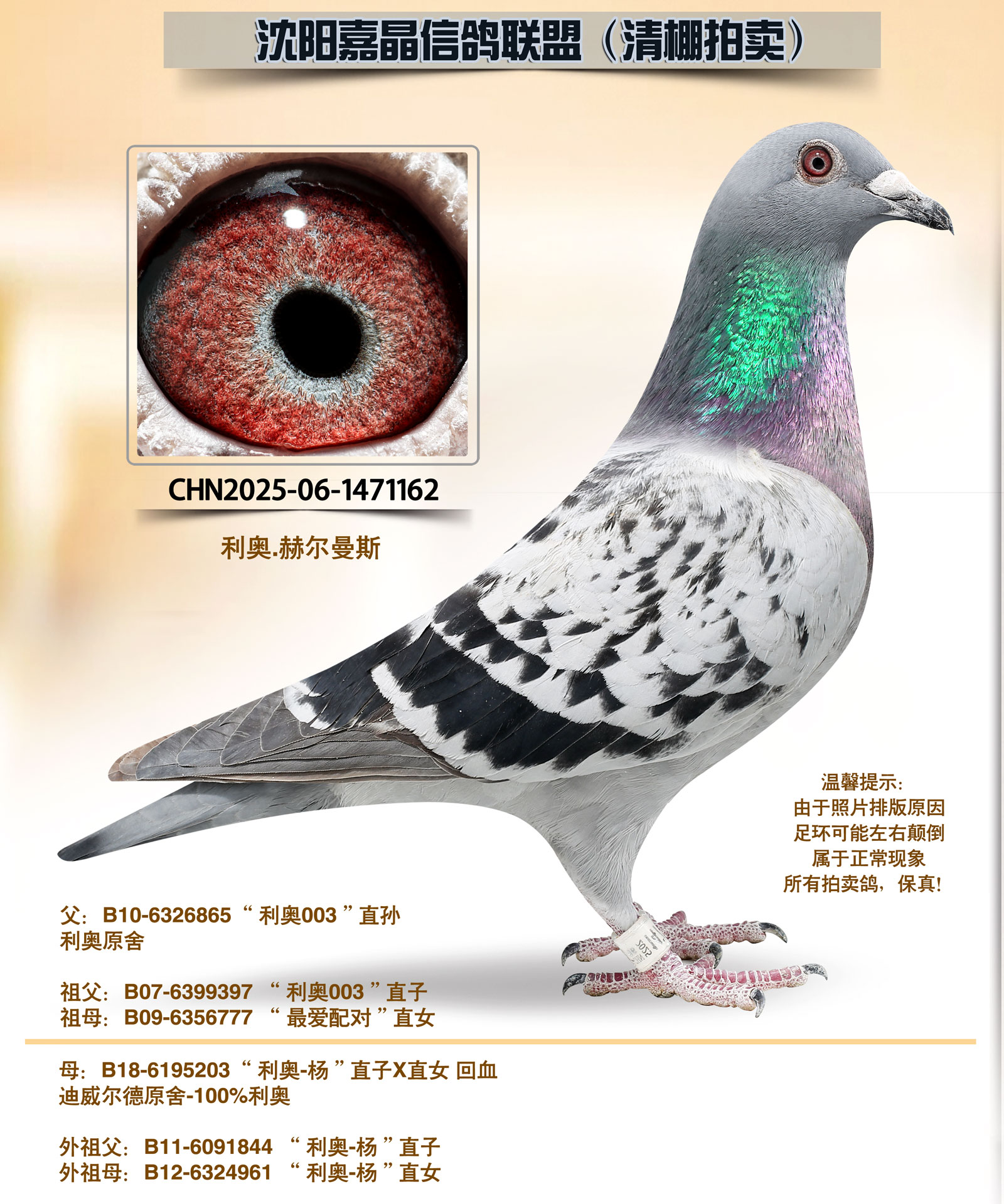 - 当前查看拍卖鸽:利奥“本舍黄金配对”子代