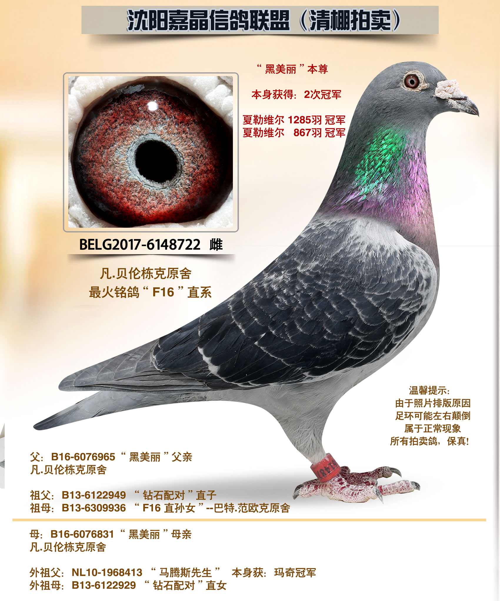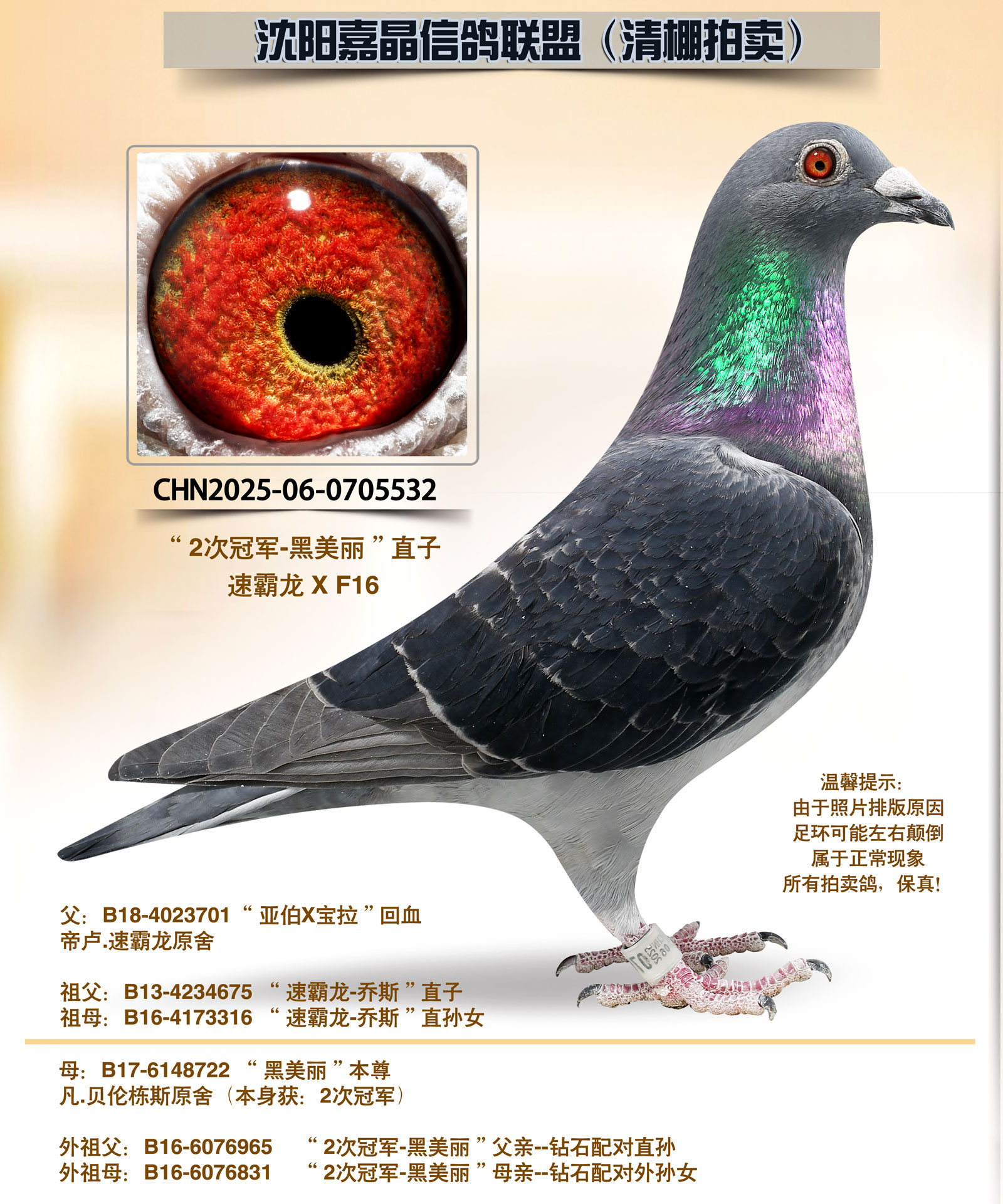 - 当前查看拍卖鸽:黑霸龙“公棚21名”平辈