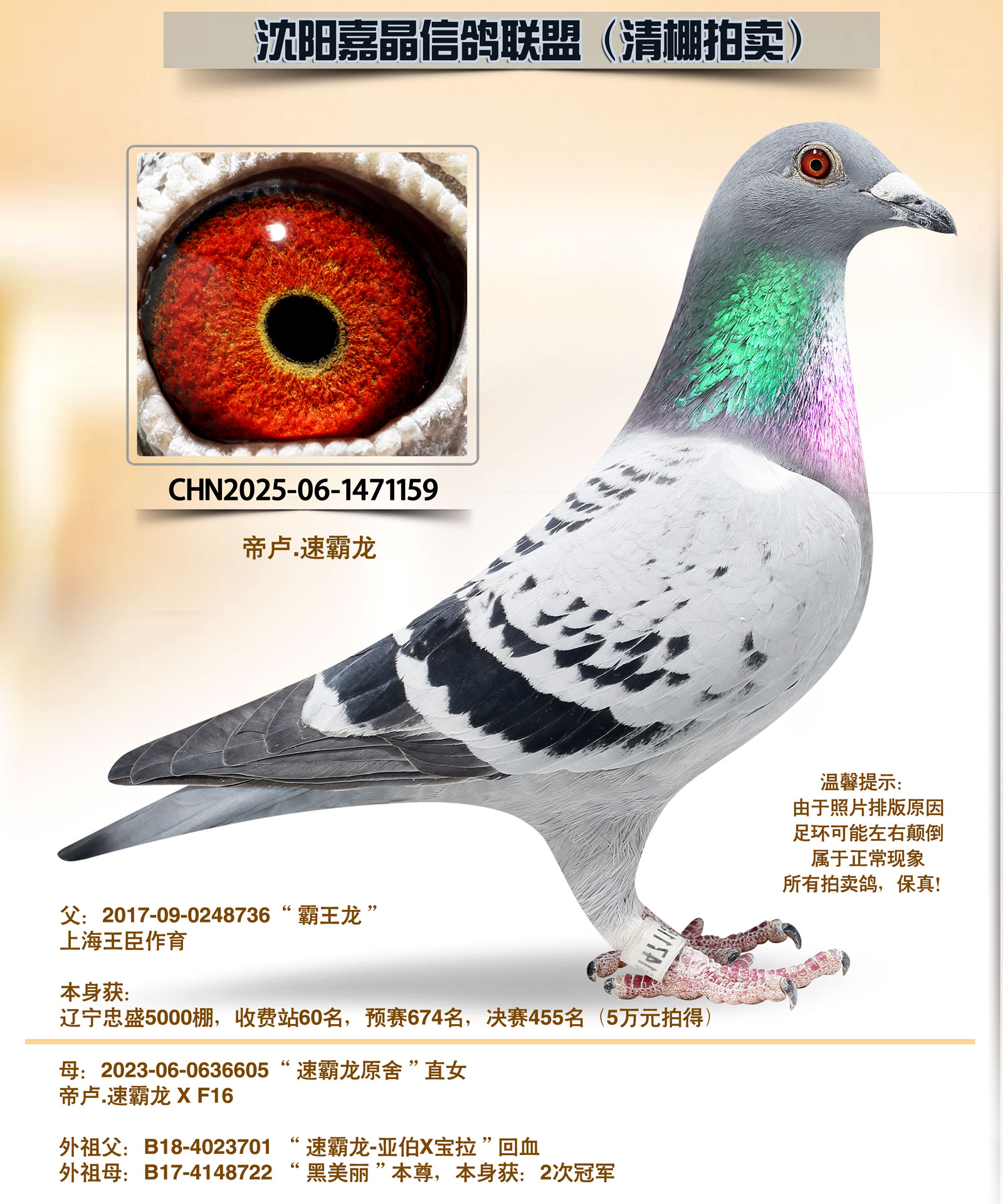 本联盟无奈,清舍拍卖,鸽舍因距离沈飞机场跑道太近,鸽群经常飞入机场试飞跑道内,飞机试飞存在安全隐患,机场工作人员多次找到本人,要求搬离拆除鸽舍,切全面停止赛鸽飞行,起初也没当回事,就在去年12月初,派出所民警找到本人,强制确切要求,必须拆除或搬离鸽舍。所给时间且非常紧迫,无奈之下将多年来饲养的种赛鸽(包括奖鸽祖辈、父母、奖鸽极其平辈)全部清棚一羽不留,本舍比赛20年,作出奖赛鸽百余羽,所留下的都是最顶尖,最实战的鸽系,希望我个人的鸽子能成为纽带,能为广大鸽友作出更优秀的赛绩,感谢鸽友多年来对嘉晶信鸽的信任与支持!!!