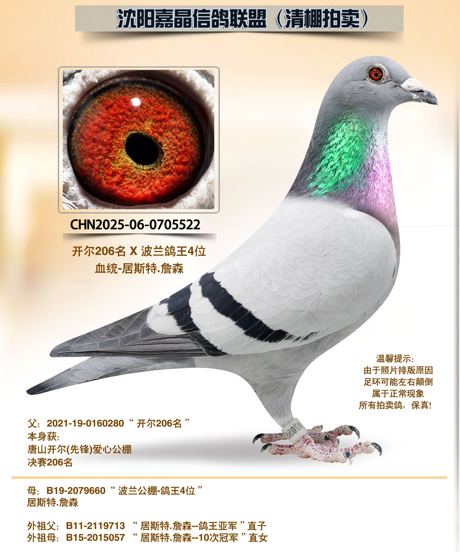 ●母:金雌-“居斯特.詹森”本身:波兰公棚,鸽王4位