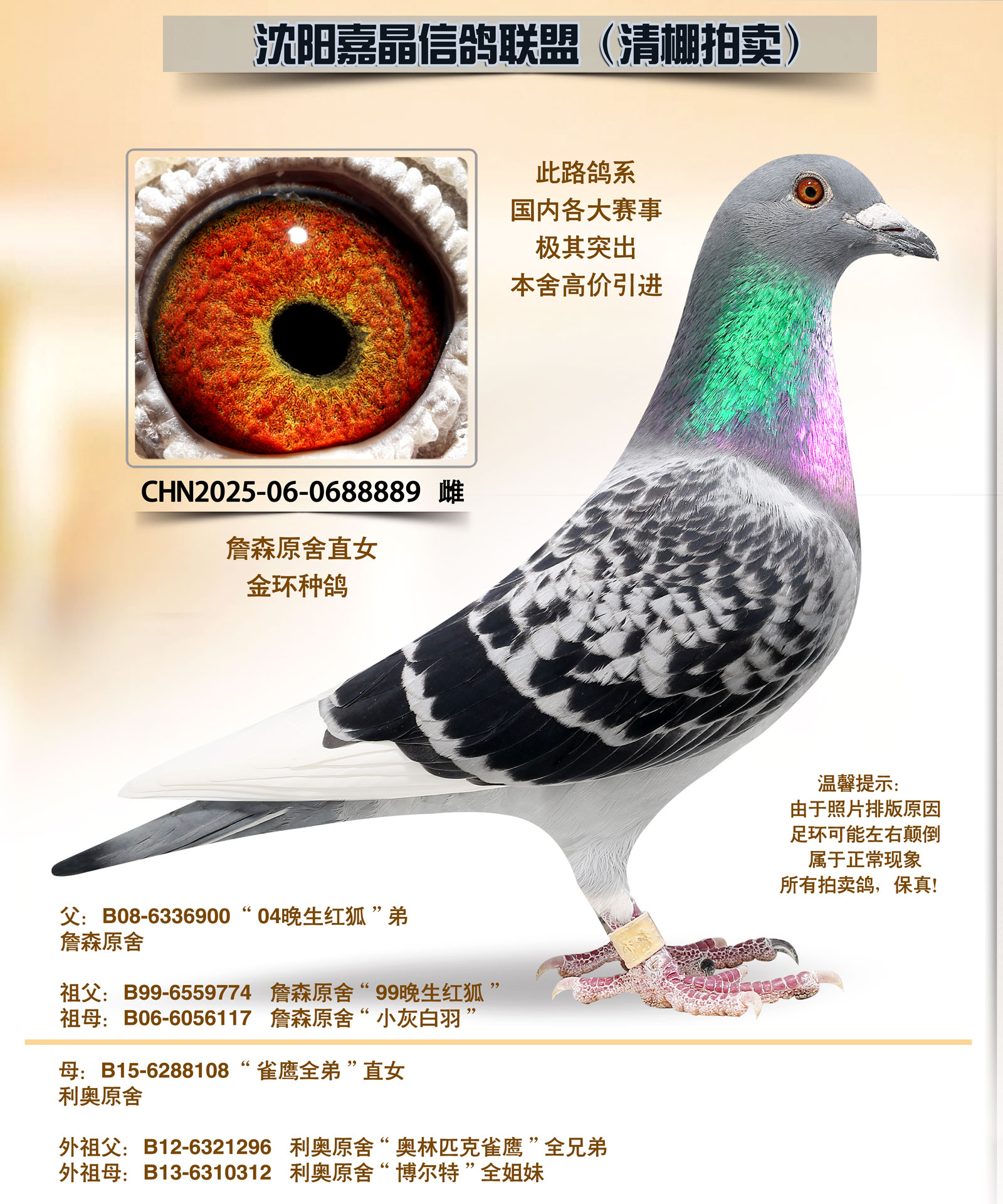 - 当前查看拍卖鸽:引进“詹森原棚”直女