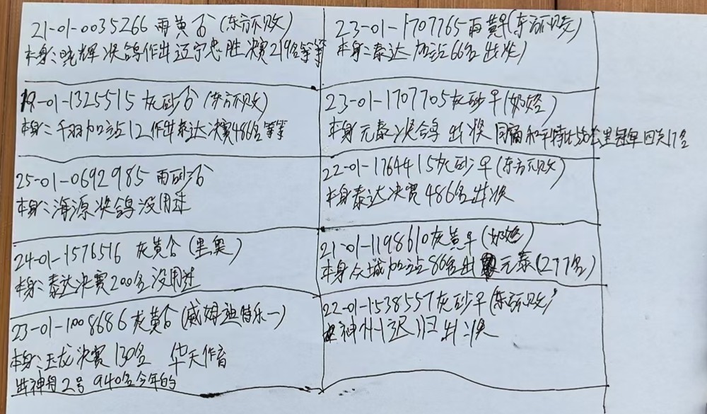 | 1644046 | 江苏平安数字公棚500公里决赛1062名 雌 | ¥100元 | 1次 |