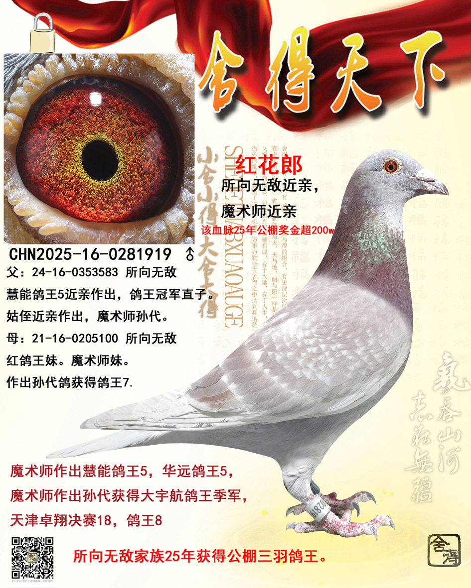 平辈鸽鸽王和冠军多羽,该路鸽是速度和耐力的完美结合,