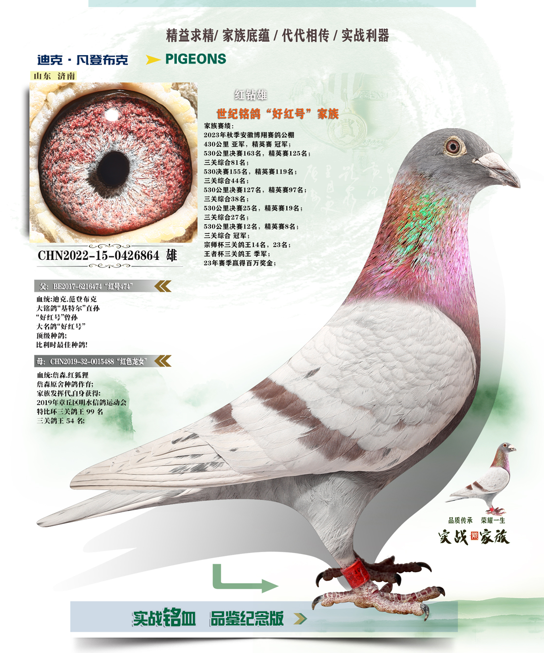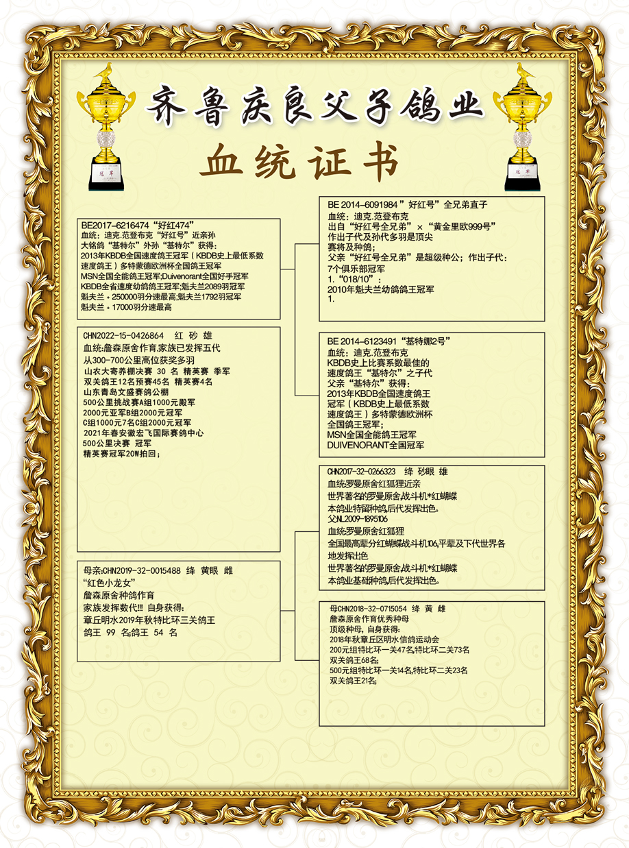 购得你家003血统鸽子今年在临河市1800特比环勇夺三关鸽王二十五名暗指二千五千共获奖金二十多万。地方大奖赛鸽王亚军四名十七名等谢谢刘总输出的好种鸽,鸽好人更好,祝刘总冠军多多,金钱多多。