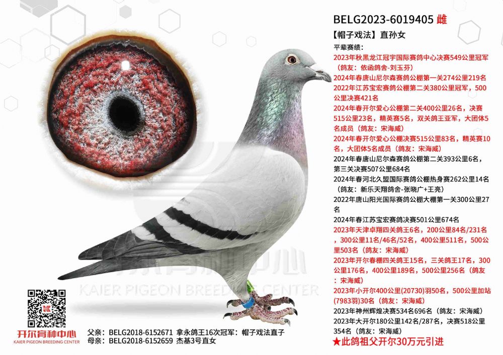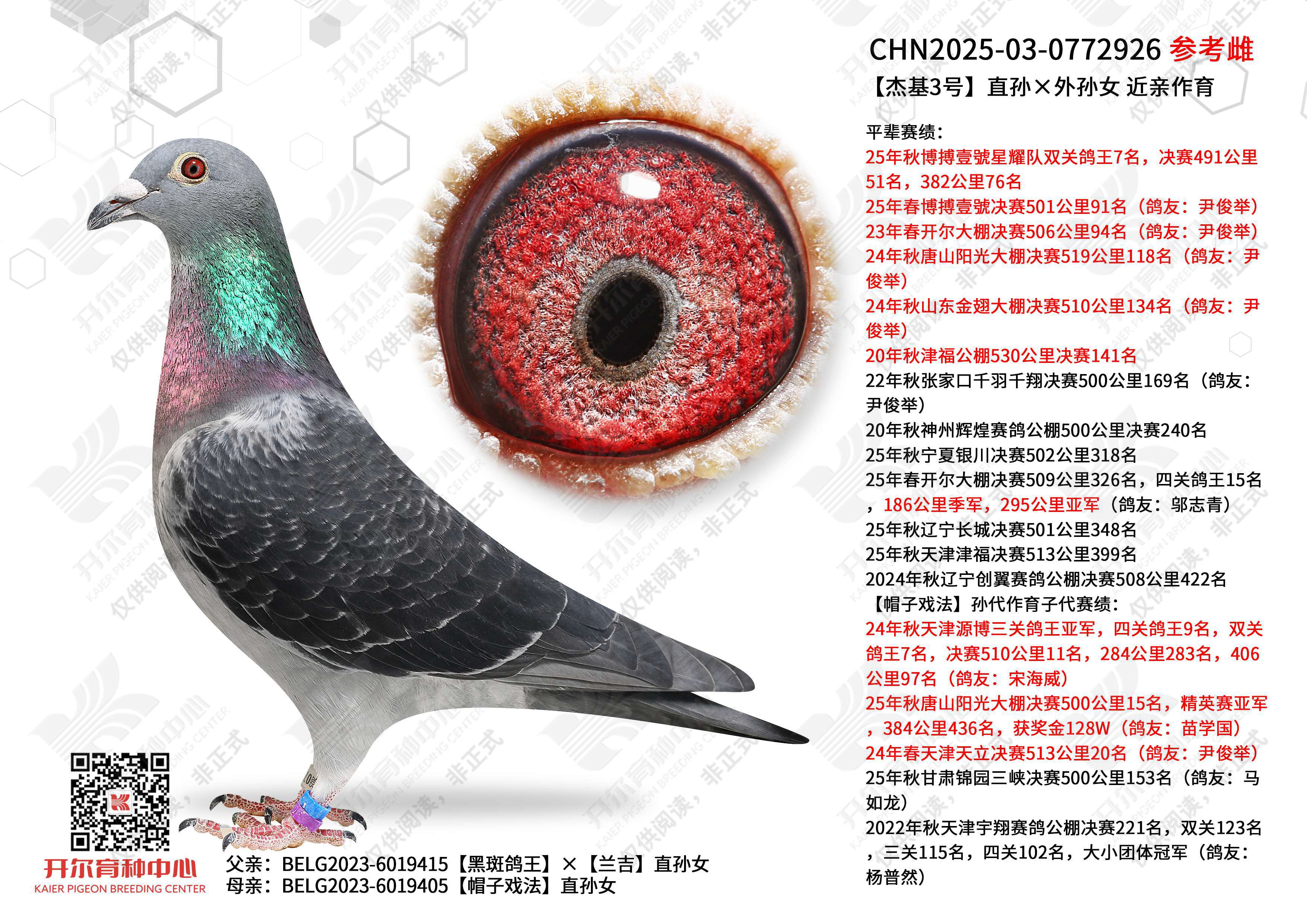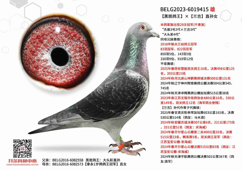 1644204 哈利直子×灰兰博外孙女(拍得此鸽送NL16-1663420) ¥10500元 2次