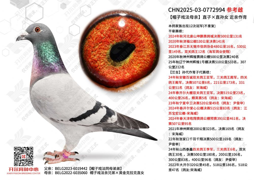 1644221 24年KBDB全国中距离幼鸽鸽王季军亲姐妹直女 ¥10000元 0次
