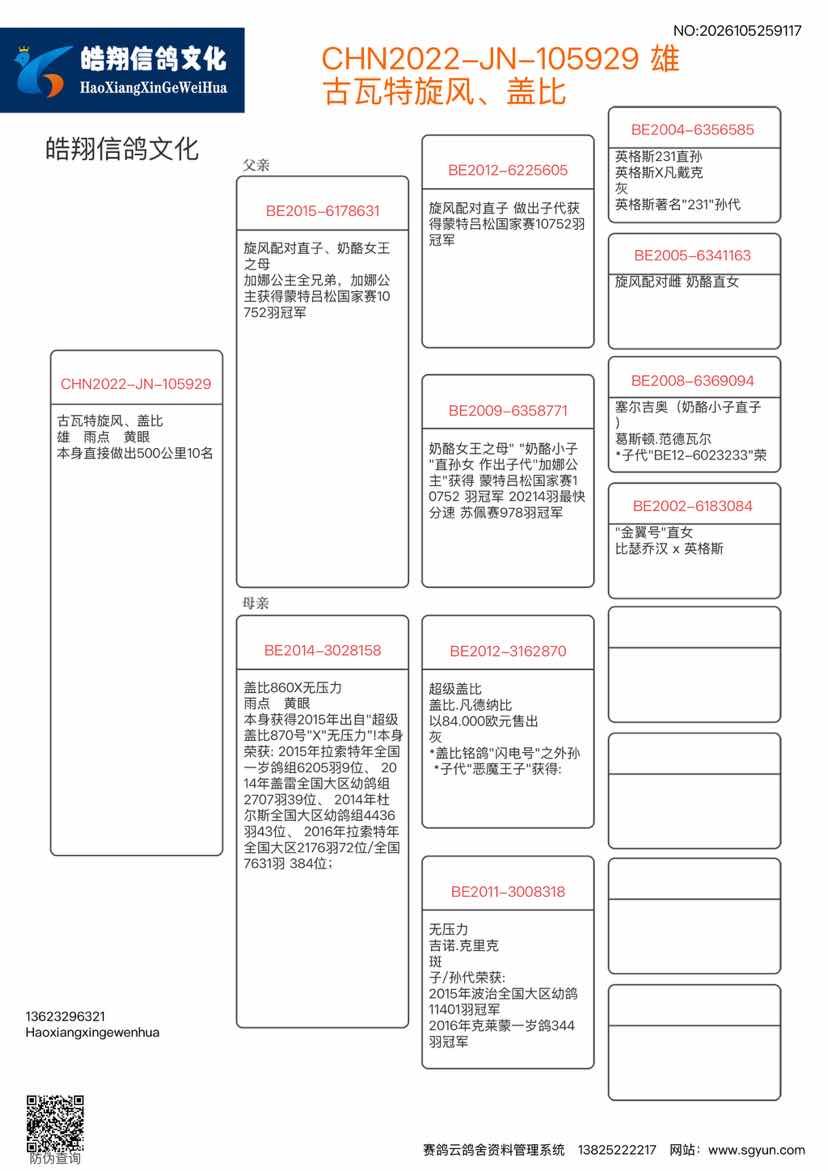 1644275 公棚实战鸽王家族029 ¥0元 0次
