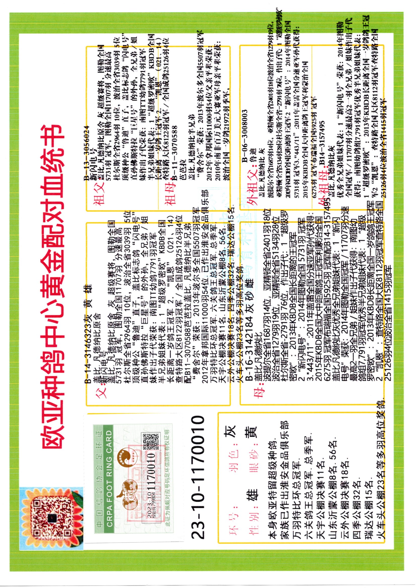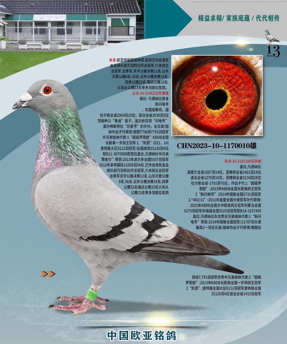 24年秋南京特比环欧亚荣获大团体冠军.小团体冠军551公里大特比13名.14名.16名.19名.20名.21名.24名.26名.27名.28名.42名.52名.54名.57名.65名.66名.68名.70名.71名.72名.74名.76名.80名.82名.83名.84名.85名.86名.90名.92名.110名.116名.121名.122名.128名.131名.158名.161名.164名.165名.166名.172名.174名.177名.182名.195名.196名.201名.205名.208名.210名.216名.253名.269名.275名.276名.294名.296名.299名,,24年秋云南天南铜都公棚决赛415名.天南铜都小棚决赛409名.云南玉活公棚决赛102名.490名.团体32名上笼二羽进二羽,天南铜都大棚506公里决赛445名。热烈祝贺河北省巨鹿县李兰生老师用欧亚泰山号血系连续十一年夺冠军,河北省国家赛冠军.全国季军等多次前十名高位,扬州王军王总用欧亚利奥24年春季获山东翔宇公棚决赛33名盖比53名。南京刘正龙刘总用欧亚盖比获得24年秋山东潍坊国际公棚决赛42名.精英赛30名.三关鸽王71名.决赛86名.加站赛16名.南京市特比环A组鸽王9名.B组鸽王5名.6名.C组鸽王5名.精英赛冠军4名.技能赛A组冠军4名.5名.秦淮区特比环荣获15名.46名.48名.87名。四川西昌徐亮徐总用欧亚利奥获得凉山州聚友决赛177名.第二关亚军双关鸽王19名.三关鸽王105名.云南豪庭公棚决赛603名。热烈祝贺24年四川重庆翔园鸽舍用欧亚泰山号荣获春季400公里冠军.秋季500公里冠军,河北王总用詹森X利奥获得千羽千翔公棚400公里冠军,广东蔡楷焕荣获24年秋爱好者 赛鸽俱乐部三关鸽王季军.一关420公里99名.二关450公里11名.三关520公里32名.单关季军.7名.12名,江西李卫兴荣获贵州红枫公棚8名.共翔俱乐部寄养棚四关综合鸽王30名.一关400公里78名.二关500公里55名.三关520公里37名.四关500公里57名.同父母获公棚18名.雷鸣获得武汉黄浦育翔中心冠军,四川陈文获得四川明鸿俱乐部300公里梦幻2名.3名.4名.9名.10名.13名.14名.15名.31名.34名.40名.41名.42名.43名.69名.71名.72名.73名.74名.94名.95名.97名.98名.99名.419公里决赛荣获总冠军7名.总共归巢9羽,四川徐亮获豪庭决赛603名,山西郑勇获得山西泰鑫公棚决赛255名詹森红狐,热烈祝贺马总获得开尔(飞跃队)决赛9名获奖金1310000万元.第一关52名,天津津福资赛180公里96名.获奖金429543万元,欧亚支持全国鸽友24年秋多人报喜 祝大家取得更好成绩,给欧亚报喜鸽友欧亚决定给每人赠送一羽超级种鸽。欧亚俱乐部特比环多关鸽王成绩:15年秋淮安特比环黑色星期一全会上笼9700多羽,当天无鸽归巢,第二天全会归巢357羽,本舍归巢158羽.前十名八羽.前一百名归巢57羽,16年春季获五关鸽王总冠军,总亚军四名.六名.七名.九名.十名.晶艺俱乐部520公里冠亚季军5名.6名.7名.9名.11名等,火车头冠军.季军6名.8名.9名.10名,16年秋晶艺俱乐部特比环520公里亚军.季军4名.6名.7名.9名,15年春南京白下特比环冠军.亚军.季军6名.7名.8名.9名.10名.指定鸽A B组获得冠军.亚军.季军4名.5名.,17年淮安特比环亚军.4名.5名.7名.8名.10名.六关鸽王总冠军.4名.6名.9名.10名,寄养棚宿迁刘总20羽特比环获冠军.季军.4名.7名.8名.9名等。18年荣获万羽特比环六关鸽王总冠军.总亚军.总季军.6名.8名.十名.单关四羽冠军.二羽亚军.四羽季军.前十名27羽。19年秋万羽特比环六关鸽王总亚军.总季军.5名.8名等,单关二羽冠军.三羽亚军.一羽季军前十名31羽。20年秋淮安市鸽会四关特比环大赛风雨无阻鸽王亚军.鸽王六名,金品俱乐部万羽特比环六关鸽王总冠军,总亚军.四名.五名.六名.七名.八名.十名.前二百名鸽王35羽,单关冠亚季军前十名四十多羽,火车头五关鸽王季军.六名.八名.前二百名鸽王十七羽。20年春荣获淮安五区一市四关鸽王总冠军.亚军.四名.八名.九名。21年秋荣获金品万羽特比环大赛六关鸽王总亚军.总季军.四名.七名.九名.十名.单关冠亚军季军前十名三十多羽。火车头协会鸽王六名.七名.十名.单关前十名十七羽。22年秋荣获鸽王总冠军.总亚军.5名.7名.8名.9名.11名.单关冠亚季军前十名三十多羽,第一关单关前二百名四十多羽,第二关前二百名三十多羽,第三关前二百名四十多羽,第四关前二百名四十多羽,第五关前一百名53羽。23年秋荣获鸽王季军.五名.八名.十名.13名.17名.20名.27名等多羽鸽王.单关前十名二十多羽。公棚.寄养棚部分成绩:16年秋宁夏黄河公棚总冠军电脑戈马力指定通炮冠军,17年送八羽参赛获得鸽王八名进奖四名,支持韩总荣获八名。支持鸽友荣获宁夏中卫公棚决赛总冠军.精英赛冠军,支持18年宁夏黄河公棚决赛冠军詹森X泰山。安徽鼎博寄养棚院内外四关鸽王总冠军.鸽王十七名.三十七名同窝,鸽王39名.42名.58名.67名。18年山东公棚预赛冠军.决赛65名.送八羽进奖五羽.指定获奔驰汽车一辆。支持鸽友获得云南蓝云公棚冠军.盖比X佛卡门。支持鸽友荣获云南银集公棚决赛冠军 詹森427X520血系 速度赛6700羽冠军。17年荣获金马俱乐部寄养棚四关鸽王总冠军.季军.六名.八名.第一关冠军.亚军.季军四名.七名.十一名.金牌教练奖。支持鸽友18年北京费翔公棚预赛九名电脑X桑杰士,支持鸽友荣获陕西威力公棚决赛11名.内蒙古临河寄养棚四关鸽王六名.詹森配泰山,支持河北王总用欧亚詹森427配胡本喜获20年秋开尔青年棚季军。云南东荣公棚16年预赛冠军.决赛77名.17年决赛12名.詹森红狐X泰山,17年平安公棚决赛4名 詹森427。欧亚获得21年金母寄养棚第一关四名.第二关5名.第三关5名.6名.7名.10名.三关鸽王总冠军,四关鸽王14名.十羽鸽王。支
