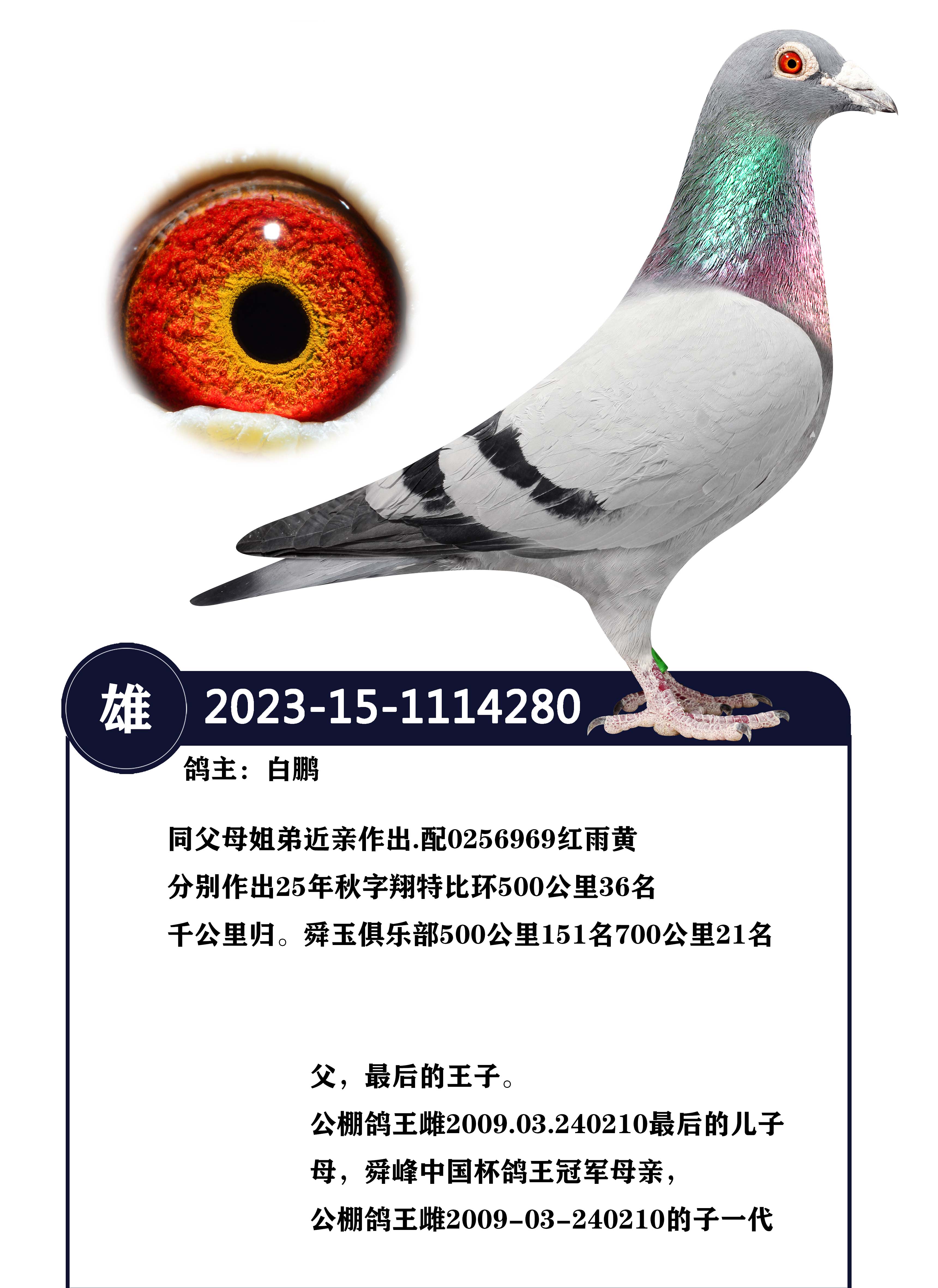 母,舜峰中国杯鸽王冠军母亲,公棚鸽王雌2009-03-240210的子一代