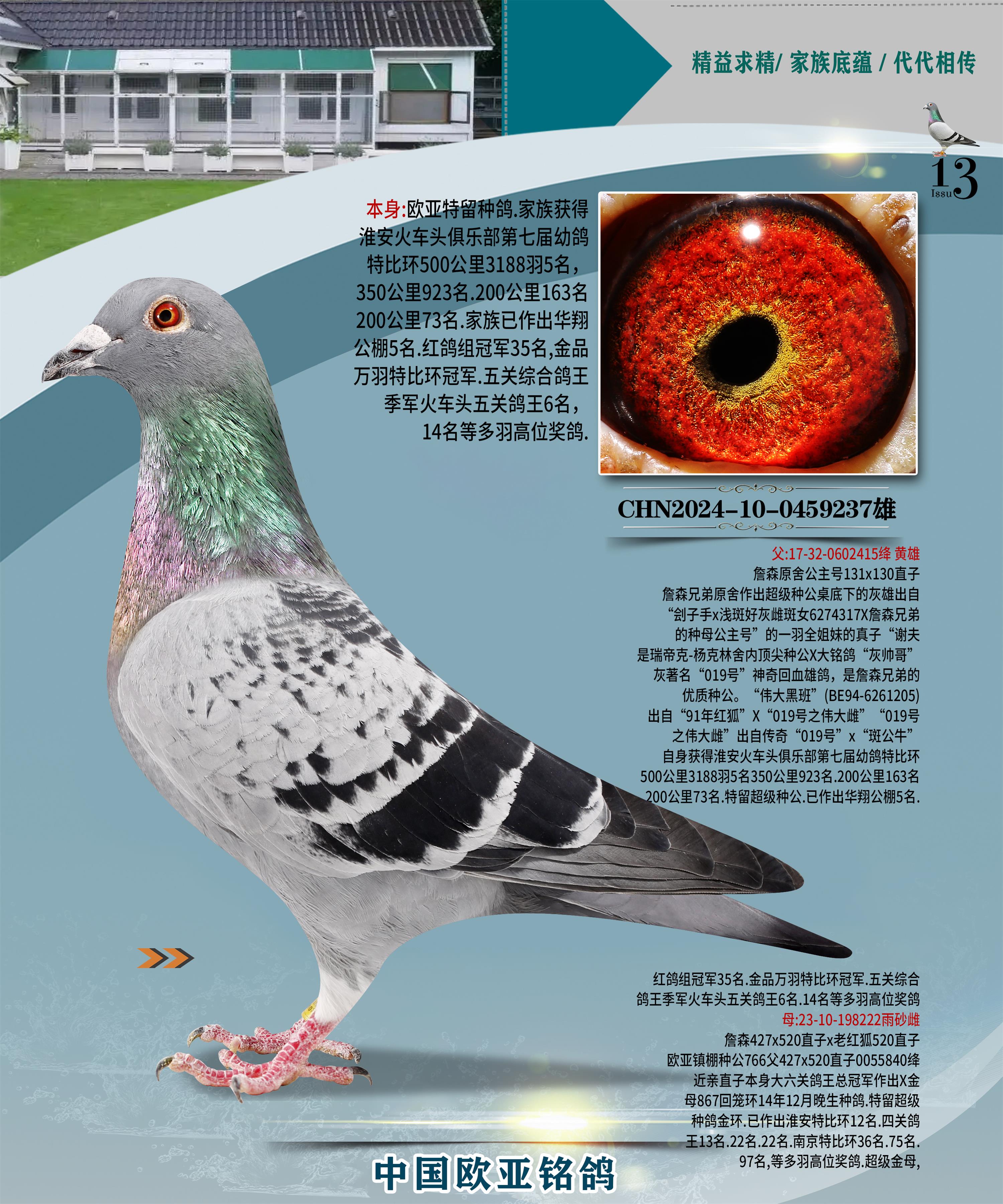 24年秋南京特比环欧亚荣获大团体冠军.小团体冠军551公里大特比13名.14名.16名.19名.20名.21名.24名.26名.27名.28名.42名.52名.54名.57名.65名.66名.68名.70名.71名.72名.74名.76名.80名.82名.83名.84名.85名.86名.90名.92名.110名.116名.121名.122名.128名.131名.158名.161名.164名.165名.166名.172名.174名.177名.182名.195名.196名.201名.205名.208名.210名.216名.253名.269名.275名.276名.294名.296名.299名,,24年秋云南天南铜都公棚决赛415名.天南铜都小棚决赛409名.云南玉活公棚决赛102名.490名.团体32名上笼二羽进二羽,天南铜都大棚506公里决赛445名。热烈祝贺河北省巨鹿县李兰生老师用欧亚泰山号血系连续十一年夺冠军,河北省国家赛冠军.全国季军等多次前十名高位,扬州王军王总用欧亚利奥24年春季获山东翔宇公棚决赛33名盖比53名。南京刘正龙刘总用欧亚盖比获得24年秋山东潍坊国际公棚决赛42名.精英赛30名.三关鸽王71名.决赛86名.加站赛16名.南京市特比环A组鸽王9名.B组鸽王5名.6名.C组鸽王5名.精英赛冠军4名.技能赛A组冠军4名.5名.秦淮区特比环荣获15名.46名.48名.87名。四川西昌徐亮徐总用欧亚利奥获得凉山州聚友决赛177名.第二关亚军双关鸽王19名.三关鸽王105名.云南豪庭公棚决赛603名。热烈祝贺24年四川重庆翔园鸽舍用欧亚泰山号荣获春季400公里冠军.秋季500公里冠军,河北王总用詹森X利奥获得千羽千翔公棚400公里冠军,广东蔡楷焕荣获24年秋爱好者 赛鸽俱乐部三关鸽王季军.一关420公里99名.二关450公里11名.三关520公里32名.单关季军.7名.12名,江西李卫兴荣获贵州红枫公棚8名.共翔俱乐部寄养棚四关综合鸽王30名.一关400公里78名.二关500公里55名.三关520公里37名.四关500公里57名.同父母获公棚18名.雷鸣获得武汉黄浦育翔中心冠军,四川陈文获得四川明鸿俱乐部300公里梦幻2名.3名.4名.9名.10名.13名.14名.15名.31名.34名.40名.41名.42名.43名.69名.71名.72名.73名.74名.94名.95名.97名.98名.99名.419公里决赛荣获总冠军7名.总共归巢9羽,四川徐亮获豪庭决赛603名,山西郑勇获得山西泰鑫公棚决赛255名詹森红狐,热烈祝贺马总获得开尔(飞跃队)决赛9名获奖金1310000万元.第一关52名,天津津福资赛180公里96名.获奖金429543万元,欧亚支持全国鸽友24年秋多人报喜 祝大家取得更好成绩,给欧亚报喜鸽友欧亚决定给每人赠送一羽超级种鸽。欧亚俱乐部特比环多关鸽王成绩:15年秋淮安特比环黑色星期一全会上笼9700多羽,当天无鸽归巢,第二天全会归巢357羽,本舍归巢158羽.前十名八羽.前一百名归巢57羽,16年春季获五关鸽王总冠军,总亚军四名.六名.七名.九名.十名.晶艺俱乐部520公里冠亚季军5名.6名.7名.9名.11名等,火车头冠军.季军6名.8名.9名.10名,16年秋晶艺俱乐部特比环520公里亚军.季军4名.6名.7名.9名,15年春南京白下特比环冠军.亚军.季军6名.7名.8名.9名.10名.指定鸽A B组获得冠军.亚军.季军4名.5名.,17年淮安特比环亚军.4名.5名.7名.8名.10名.六关鸽王总冠军.4名.6名.9名.10名,寄养棚宿迁刘总20羽特比环获冠军.季军.4名.7名.8名.9名等。18年荣获万羽特比环六关鸽王总冠军.总亚军.总季军.6名.8名.十名.单关四羽冠军.二羽亚军.四羽季军.前十名27羽。19年秋万羽特比环六关鸽王总亚军.总季军.5名.8名等,单关二羽冠军.三羽亚军.一羽季军前十名31羽。20年秋淮安市鸽会四关特比环大赛风雨无阻鸽王亚军.鸽王六名,金品俱乐部万羽特比环六关鸽王总冠军,总亚军.四名.五名.六名.七名.八名.十名.前二百名鸽王35羽,单关冠亚季军前十名四十多羽,火车头五关鸽王季军.六名.八名.前二百名鸽王十七羽。20年春荣获淮安五区一市四关鸽王总冠军.亚军.四名.八名.九名。21年秋荣获金品万羽特比环大赛六关鸽王总亚军.总季军.四名.七名.九名.十名.单关冠亚军季军前十名三十多羽。火车头协会鸽王六名.七名.十名.单关前十名十七羽。22年秋荣获鸽王总冠军.总亚军.5名.7名.8名.9名.11名.单关冠亚季军前十名三十多羽,第一关单关前二百名四十多羽,第二关前二百名三十多羽,第三关前二百名四十多羽,第四关前二百名四十多羽,第五关前一百名53羽。23年秋荣获鸽王季军.五名.八名.十名.13名.17名.20名.27名等多羽鸽王.单关前十名二十多羽。公棚.寄养棚部分成绩:16年秋宁夏黄河公棚总冠军电脑戈马力指定通炮冠军,17年送八羽参赛获得鸽王八名进奖四名,支持韩总荣获八名。支持鸽友荣获宁夏中卫公棚决赛总冠军.精英赛冠军,支持18年宁夏黄河公棚决赛冠军詹森X泰山。安徽鼎博寄养棚院内外四关鸽王总冠军.鸽王十七名.三十七名同窝,鸽王39名.42名.58名.67名。18年山东公棚预赛冠军.决赛65名.送八羽进奖五羽.指定获奔驰汽车一辆。支持鸽友获得云南蓝云公棚冠军.盖比X佛卡门。支持鸽友荣获云南银集公棚决赛冠军 詹森427X520血系 速度赛6700羽冠军。17年荣获金马俱乐部寄养棚四关鸽王总冠军.季军.六名.八名.第一关冠军.亚军.季军四名.七名.十一名.金牌教练奖。支持鸽友18年北京费翔公棚预赛九名电脑X桑杰士,支持鸽友荣获陕西威力公棚决赛11名.内蒙古临河寄养棚四关鸽王六名.詹森配泰山,支持河北王总用欧亚詹森427配胡本喜获20年秋开尔青年棚季军。云南东荣公棚16年预赛冠军.决赛77名.17年决赛12名.詹森红狐X泰山,17年平安公棚决赛4名 詹森427。欧亚获得21年金母寄养棚第一关四名.第二关5名.第三关5名.6名.7名.10名.三关鸽王总冠军,四关鸽王14名.十羽鸽王。支持河