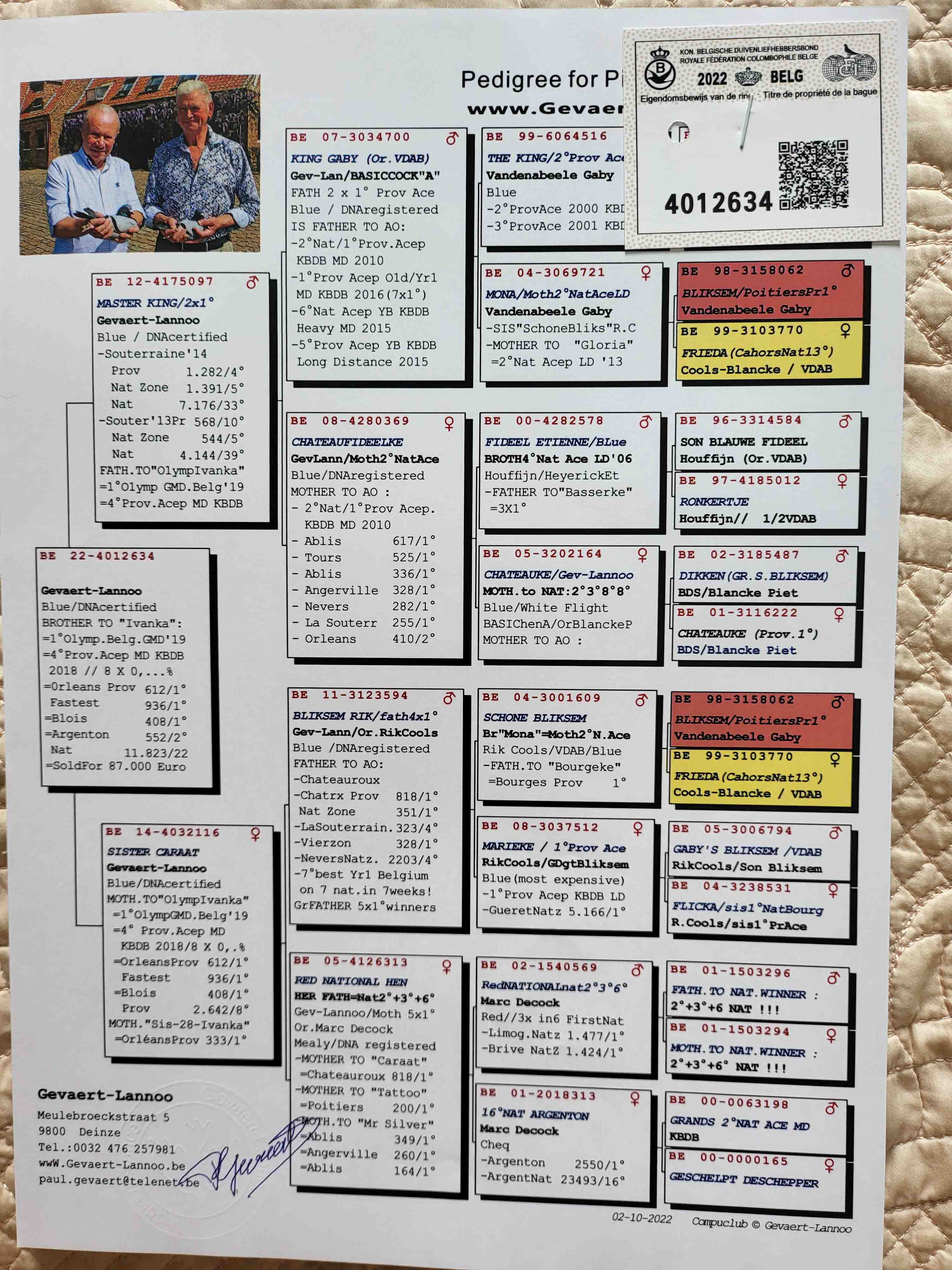 所有拍卖种鸽作育一切正常,因换环境不保作育~!