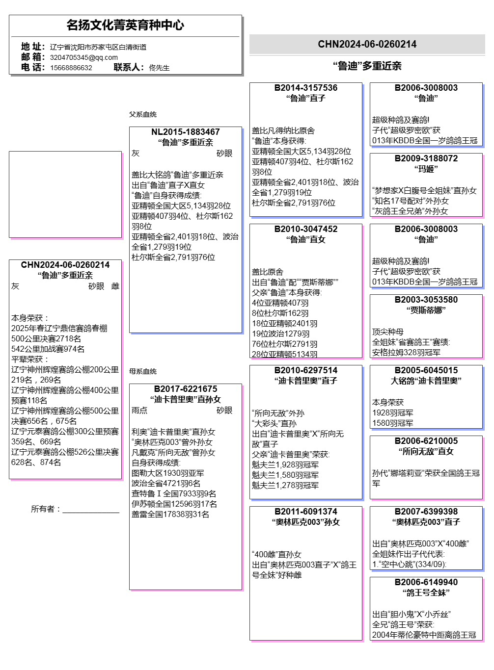 所有拍卖鸽全部血统真实!!个人鉴鸽观点不一,飞不飞天上见.血统成绩第一