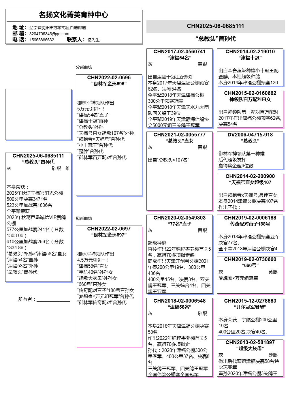 【关于血统书】所有拍卖鸽有血统书或者奖杯的本舍都以上传‘没上传就表示没有’