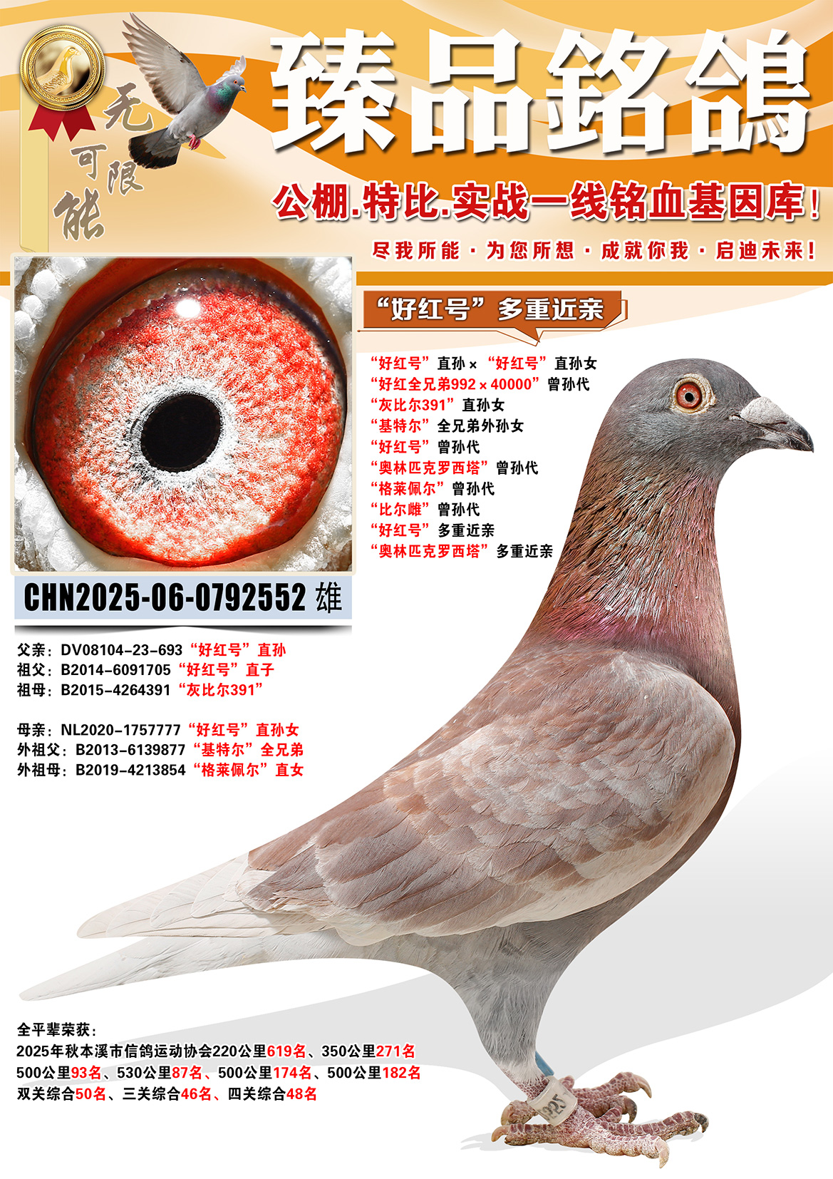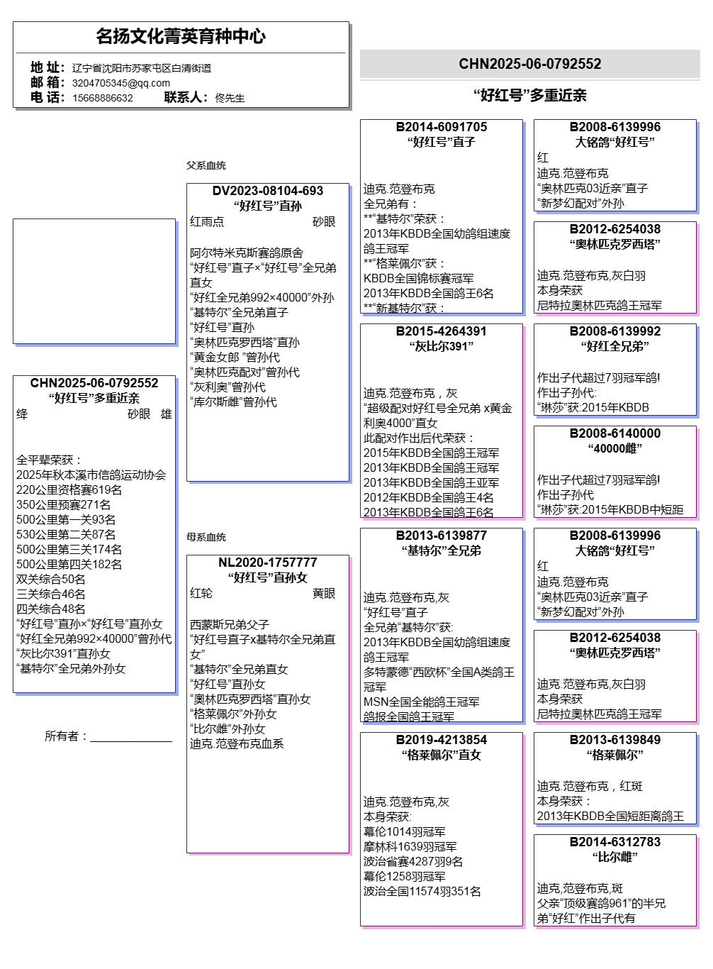 所有拍卖鸽全部血统真实!!个人鉴鸽观点不一,飞不飞天上见.血统成绩第一