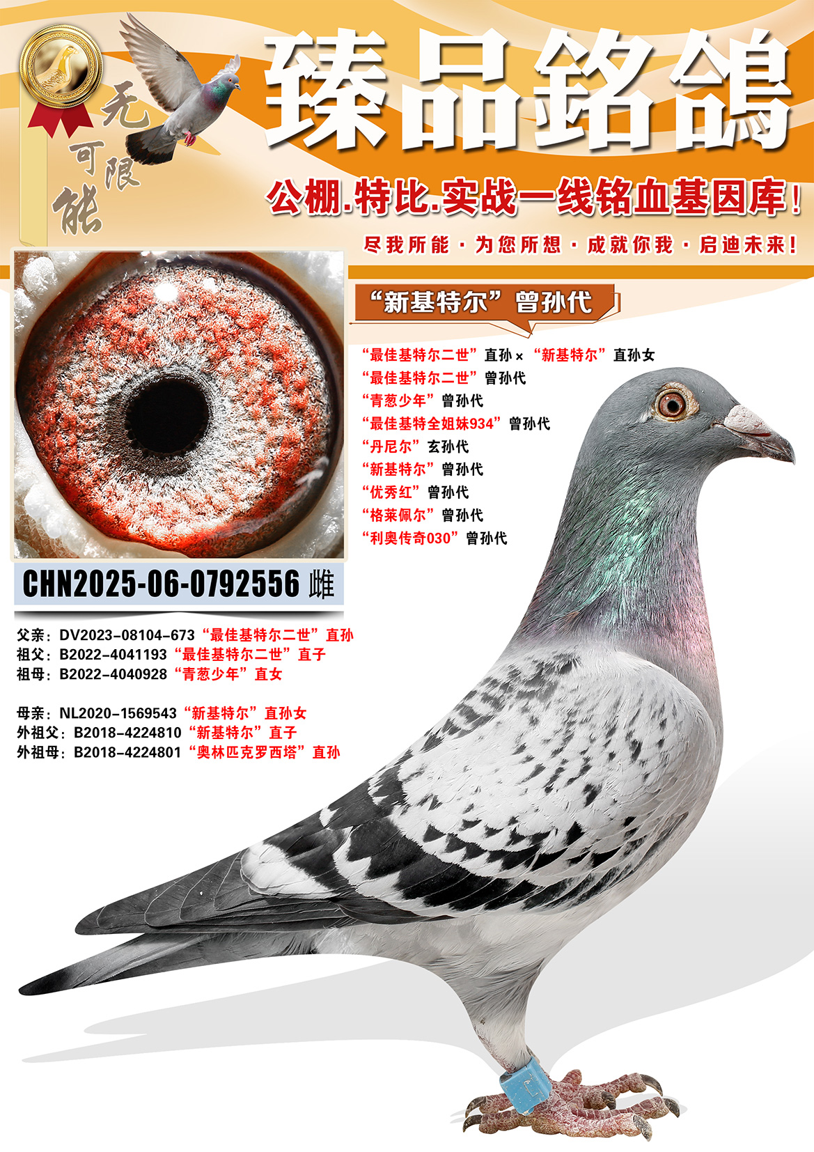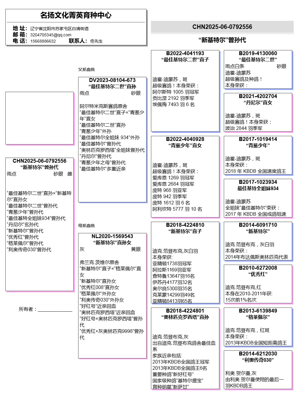 所有拍卖鸽全部血统真实!!个人鉴鸽观点不一,飞不飞天上见.血统成绩第一