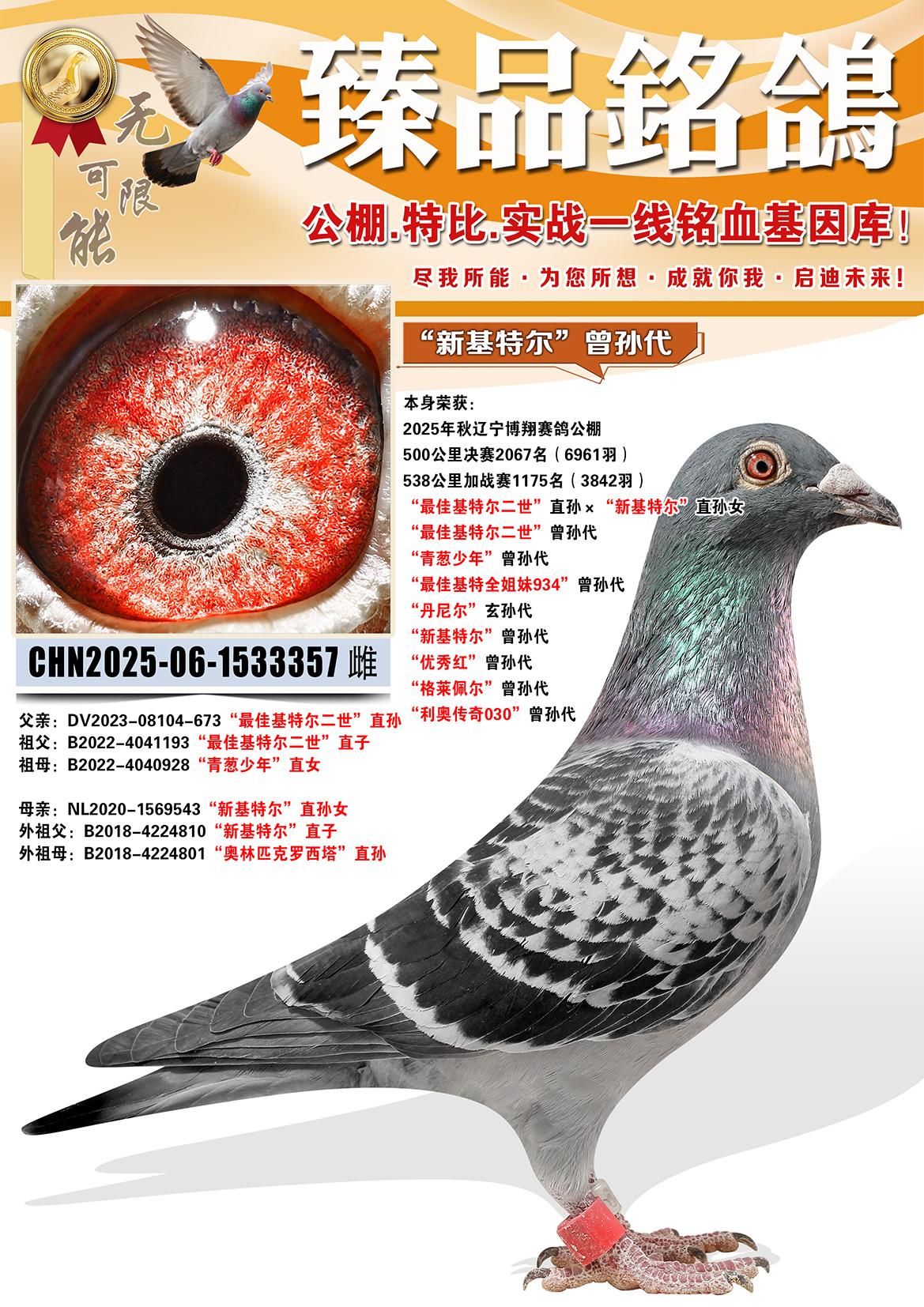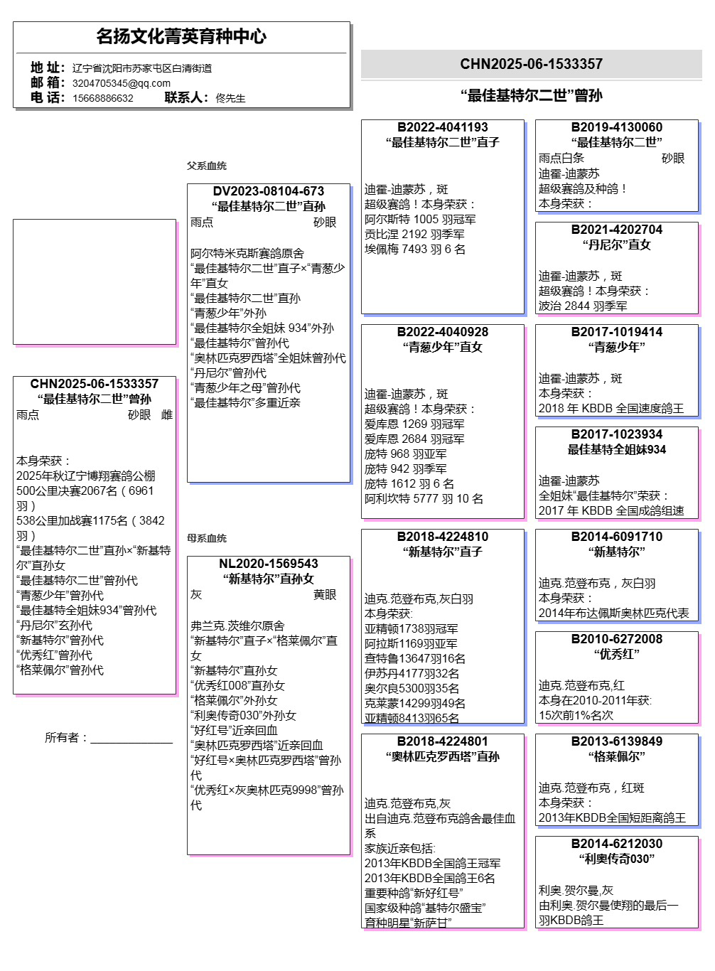 所有拍卖鸽全部血统真实!!个人鉴鸽观点不一,飞不飞天上见.血统成绩第一