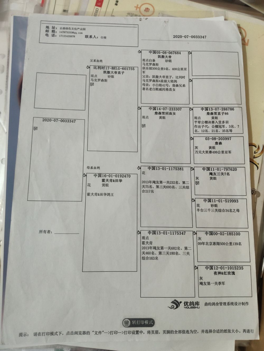鸽子有血统书的以上传,没有上传的不提供血统书。介意勿拍!