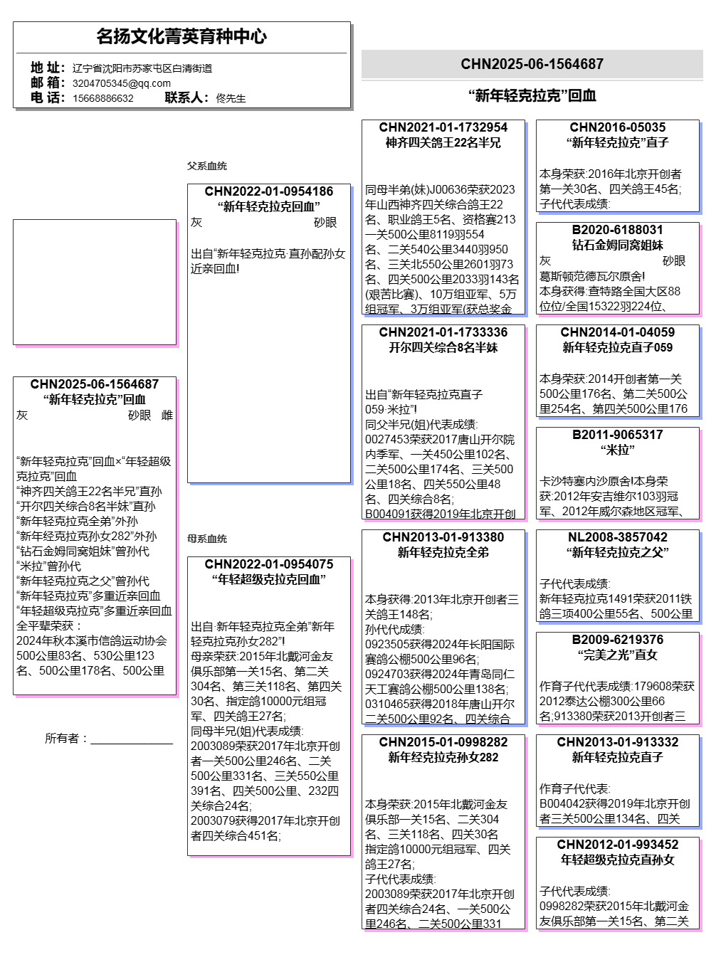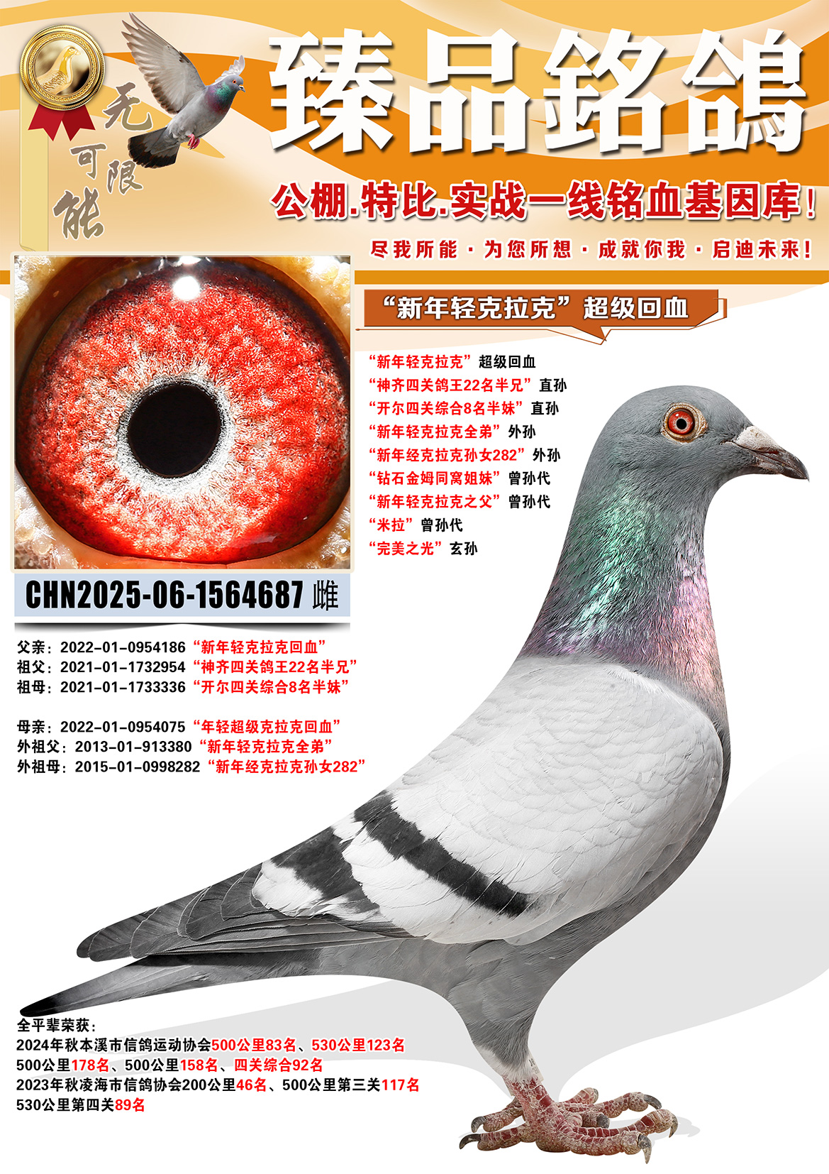所有拍卖鸽全部血统真实!!个人鉴鸽观点不一,飞不飞天上见.血统成绩第一