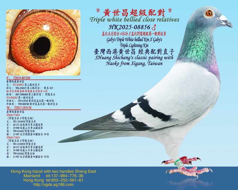 廣東順德鴿友馮有堅先生使翔蓋比白腹號鴿系勇奪三關總冠軍、關關指冠軍、站站指冠軍