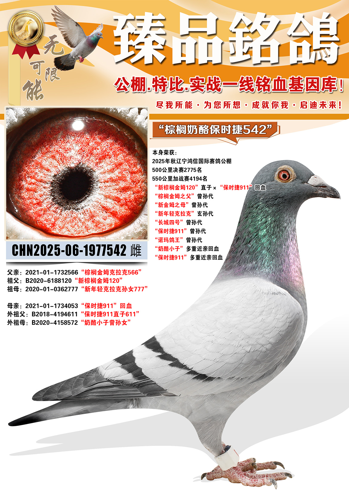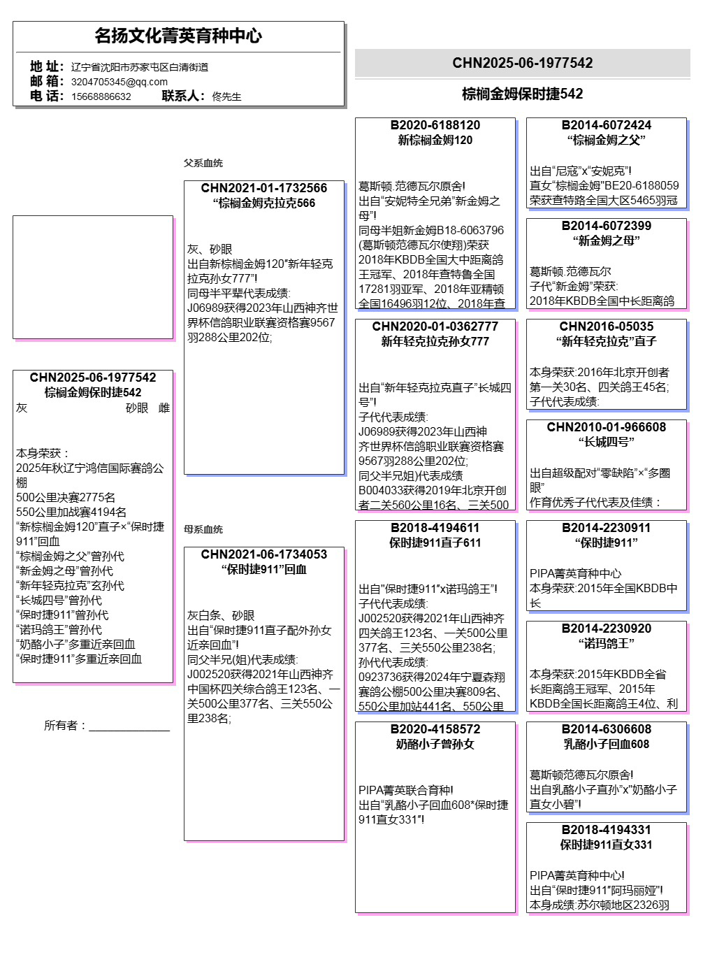 所有拍卖鸽全部血统真实!!个人鉴鸽观点不一,飞不飞天上见.血统成绩第一