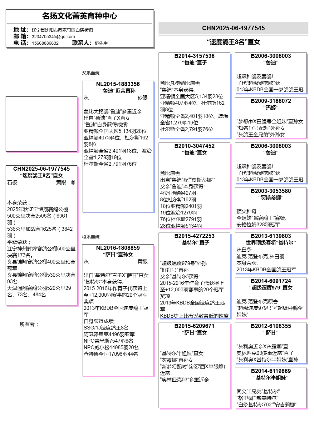 【关于血统书】所有拍卖鸽有血统书或者奖杯的本舍都以上传‘没上传就表示没有’