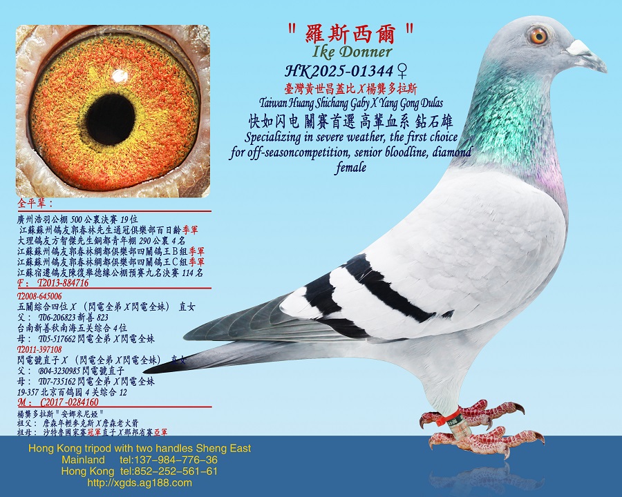 本中心作翔臺灣黃世昌先生蓋比「白腹號」血系配楊龔多拉斯在河南頂尚春棚500公裏總決賽參加羽數7363羽惡劣氣侯勇奪345位(僅參賽二羽)!