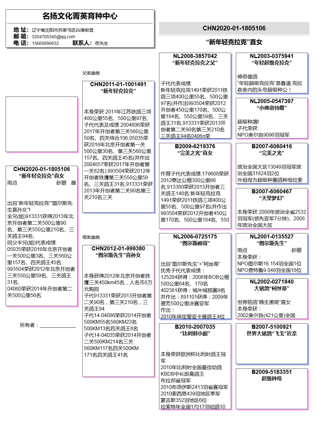 【关于血统书】所有拍卖鸽有血统书或者奖杯的本舍都以上传‘没上传就表示没有’