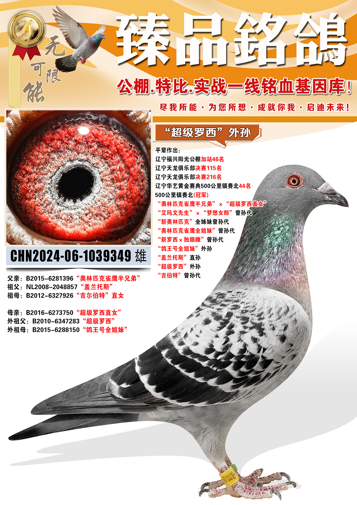 所有拍卖鸽全部血统真实!!个人鉴鸽观点不一,飞不飞天上见.血统成绩第一