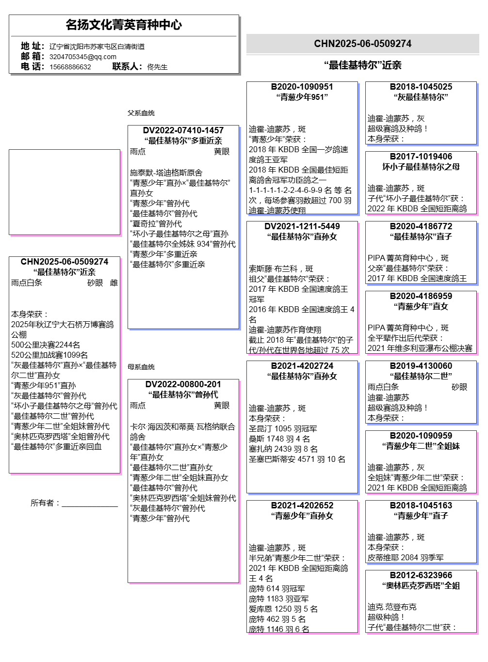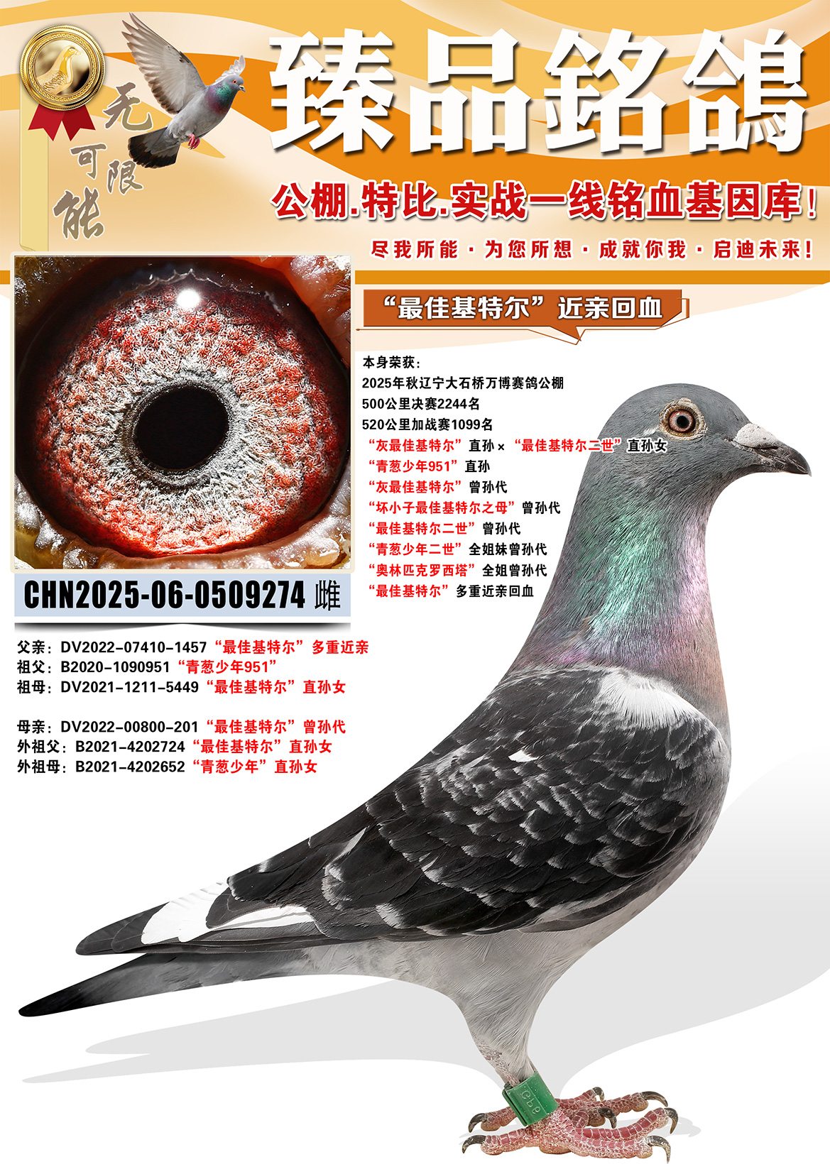 所有拍卖鸽全部血统真实!!个人鉴鸽观点不一,飞不飞天上见.血统成绩第一
